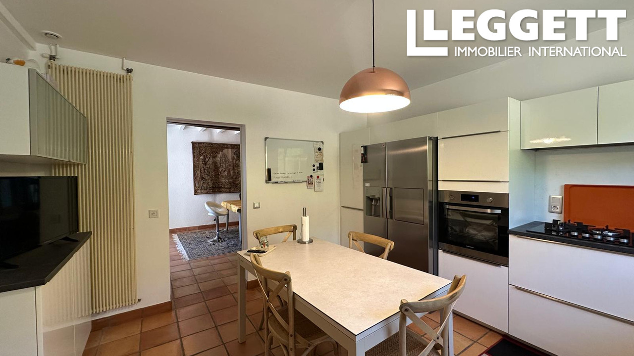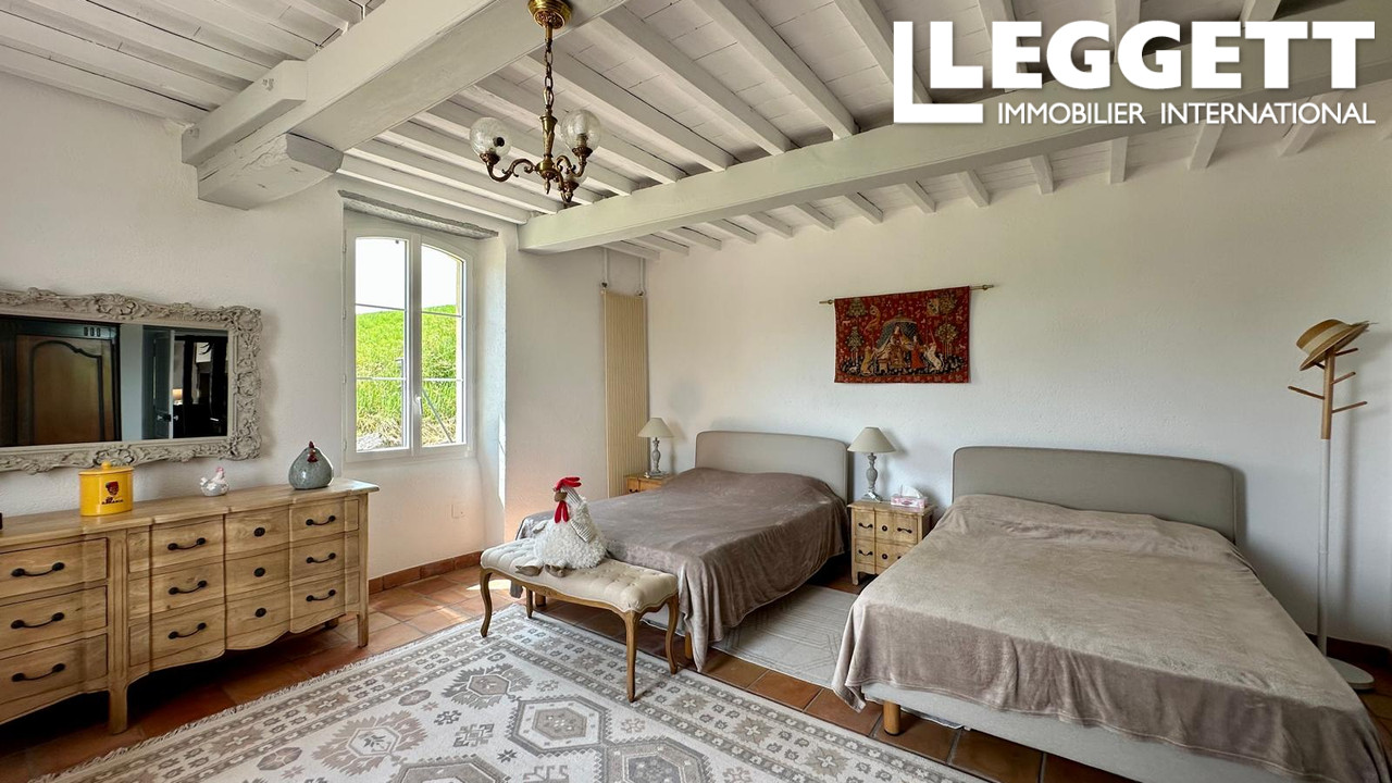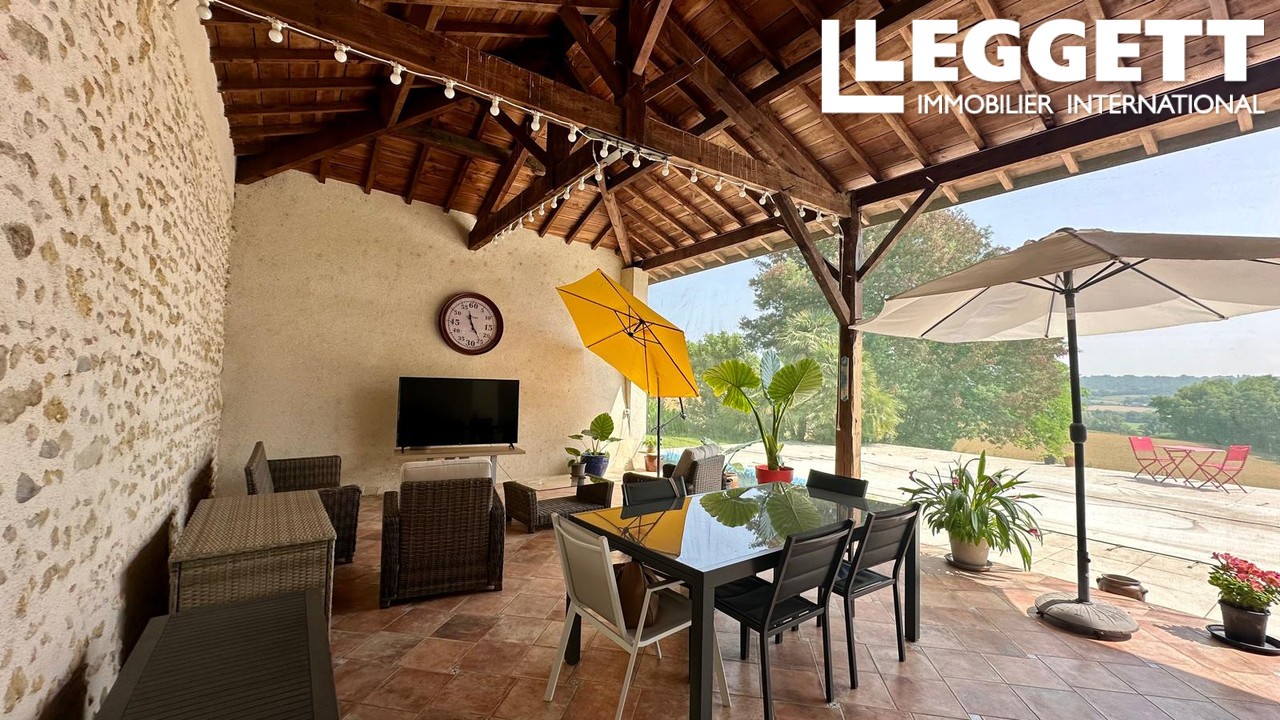 A37820JSN32 - Située dans la campagne tranquille de Projan, dans le Gers, cette charmante maison de 3 chambres offre un grand espace de vie et des vues imprenables. La propriété comprend des chambres, une mezzanine spacieuse, un salon confortable, une salle à manger et une cuisine équipée. Un hall d'entrée généreux, une buanderie et une grande terrasse couverte permettent de vivre et de se divertir confortablement. Profitez de l'été au bord de la piscine creusée de 8x4m, promenez-vous dans les beaux jardins avec un étang paisible, ou admirez les vues ininterrompues sur la campagne. Une grande grange séparée offre un potentiel supplémentaire. La propriété est équipée de double vitrage et se trouve à proximité des commerces locaux et des attractions touristiques telles que le festival de jazz de Marciac, le circuit automobile de Nogaro et les stations thermales. Idéale pour une maison de famille, une retraite de vacances ou une évasion rurale.