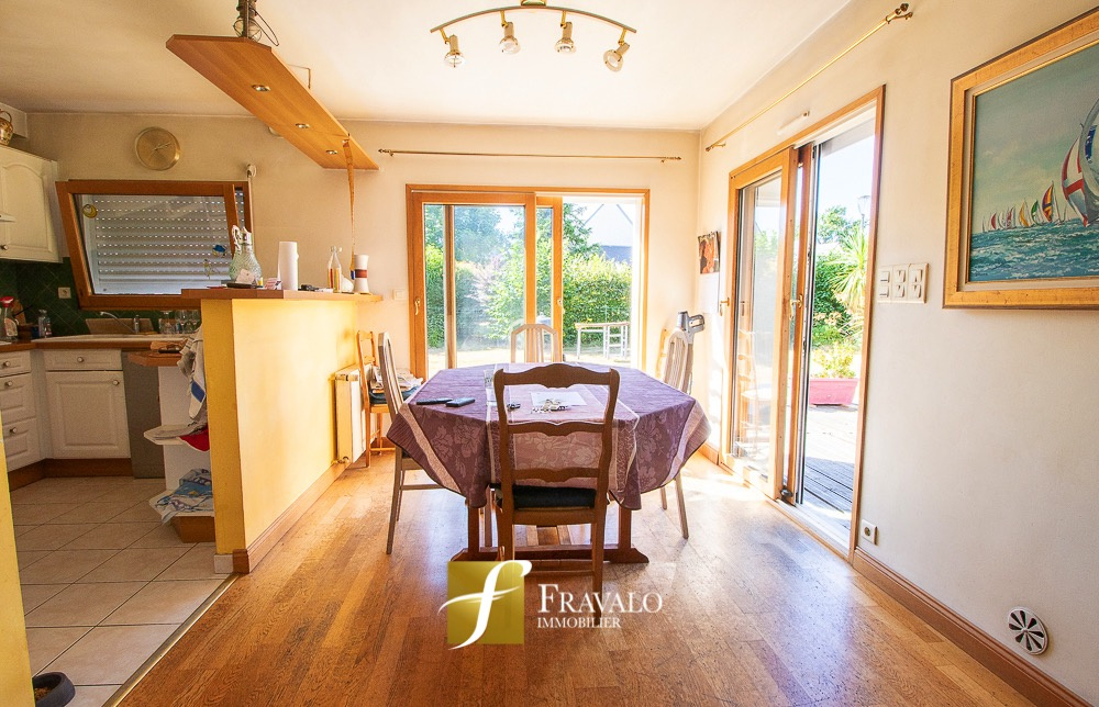A seulement 10 minutes à pied du bourg de Ploeren, venez découvrir cette maison des années 2000 d'environ 120m2. Au rez-de-chaussée, vous trouverez un spacieux séjour agrémenté d'un poêle à bois, une cuisine ouverte aménagée, une chambre avec salle d'eau privative, un wc ainsi qu'un garage. A l'étage, une grande mezzanine distribue deux chambres, une salle de bains et un wc. Le tout sur un terrain clos et sans vis-à-vis d'environ 450 m2. Estimation des coûts annuels d'énergie pour un usage standard du logement: entre 1410 EUR et 1970 EUR (abonnement compris). Les informations sur les risques auxquels ce bien est exposé sont disponibles sur le site Géorisques : georisques.gouv.fr