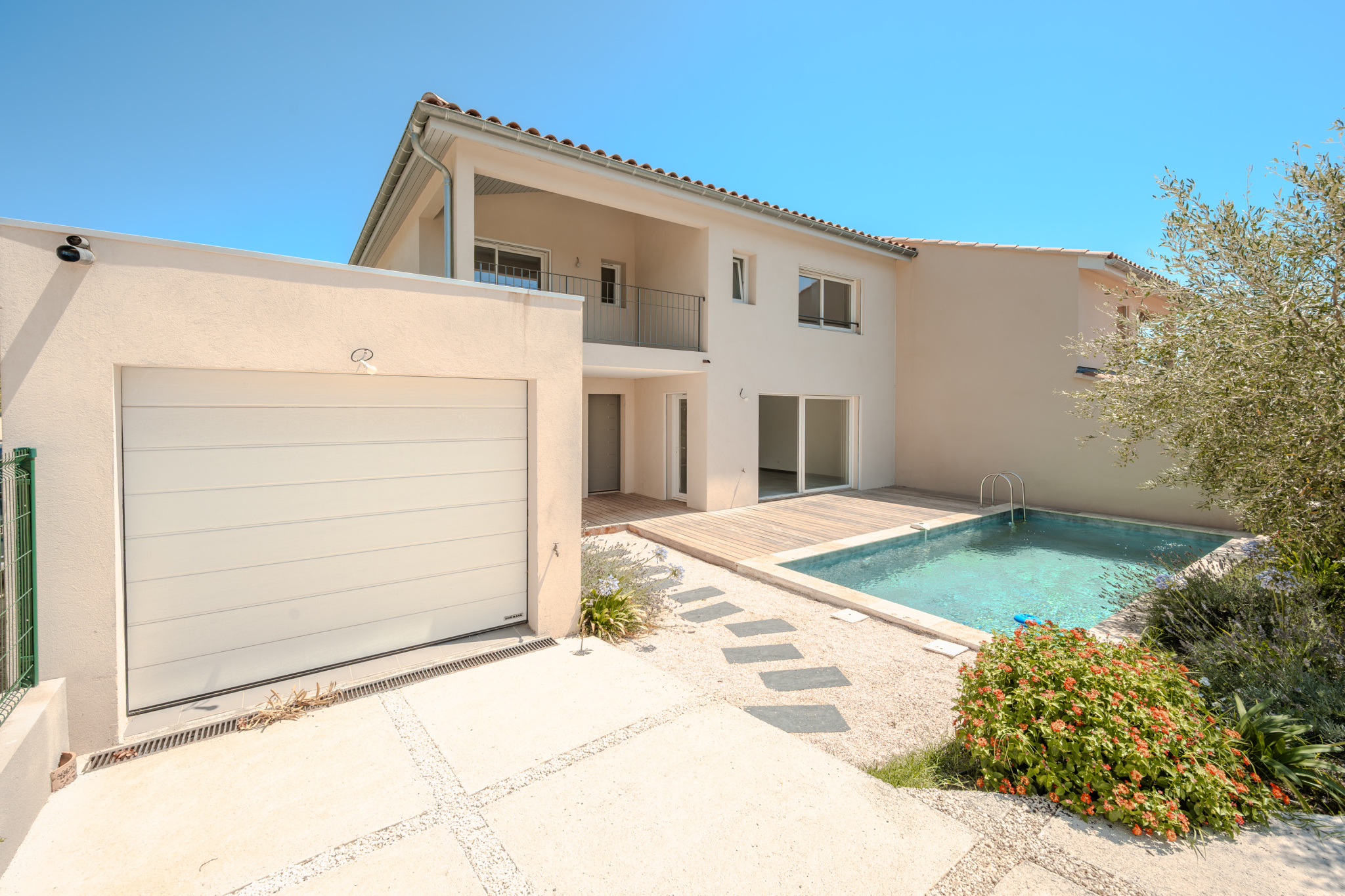 Magnifique villa T5 d'architecte neuve aux prestations de standing offrant 136m2 habitables conforme aux dernières règlementations environnementales. Edifiée sur un terrain de 504m2 avec piscine, garage et stationnements.