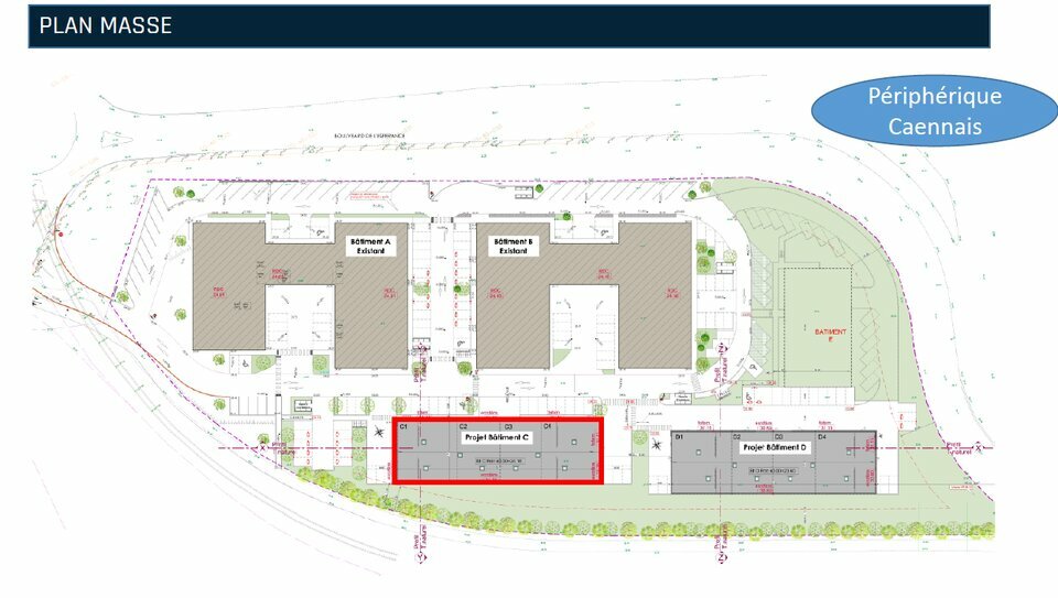 Au sein d'un parc d'activité bureaux, 1 cellule de 253 m²1 accès plain pied, Dalle déton , HSP : 6 mLivraison brut de béton fluides en attente.