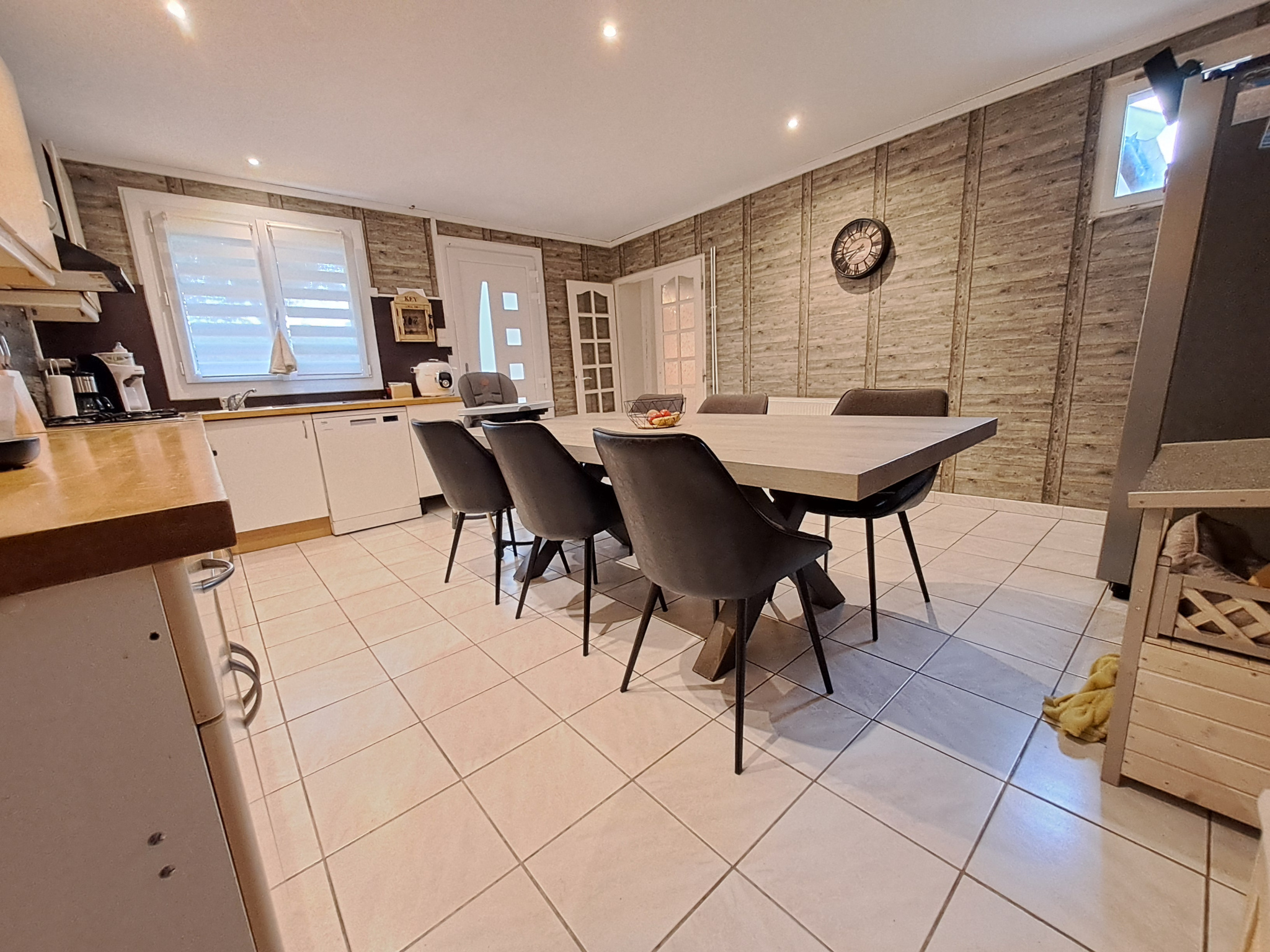 Caractéristiques principales : Surface habitable : environ 120 m2, 4 chambres dont 2 au rez-de-chaussée, salon/séjour spacieux , grande cuisine équipée et fonctionnelle, salle de bains + WC séparé, jardin clos et bien entretenu, parfait pour les enfants ou les moments de détente, 2 garages indépendants + stationnements extérieurs.