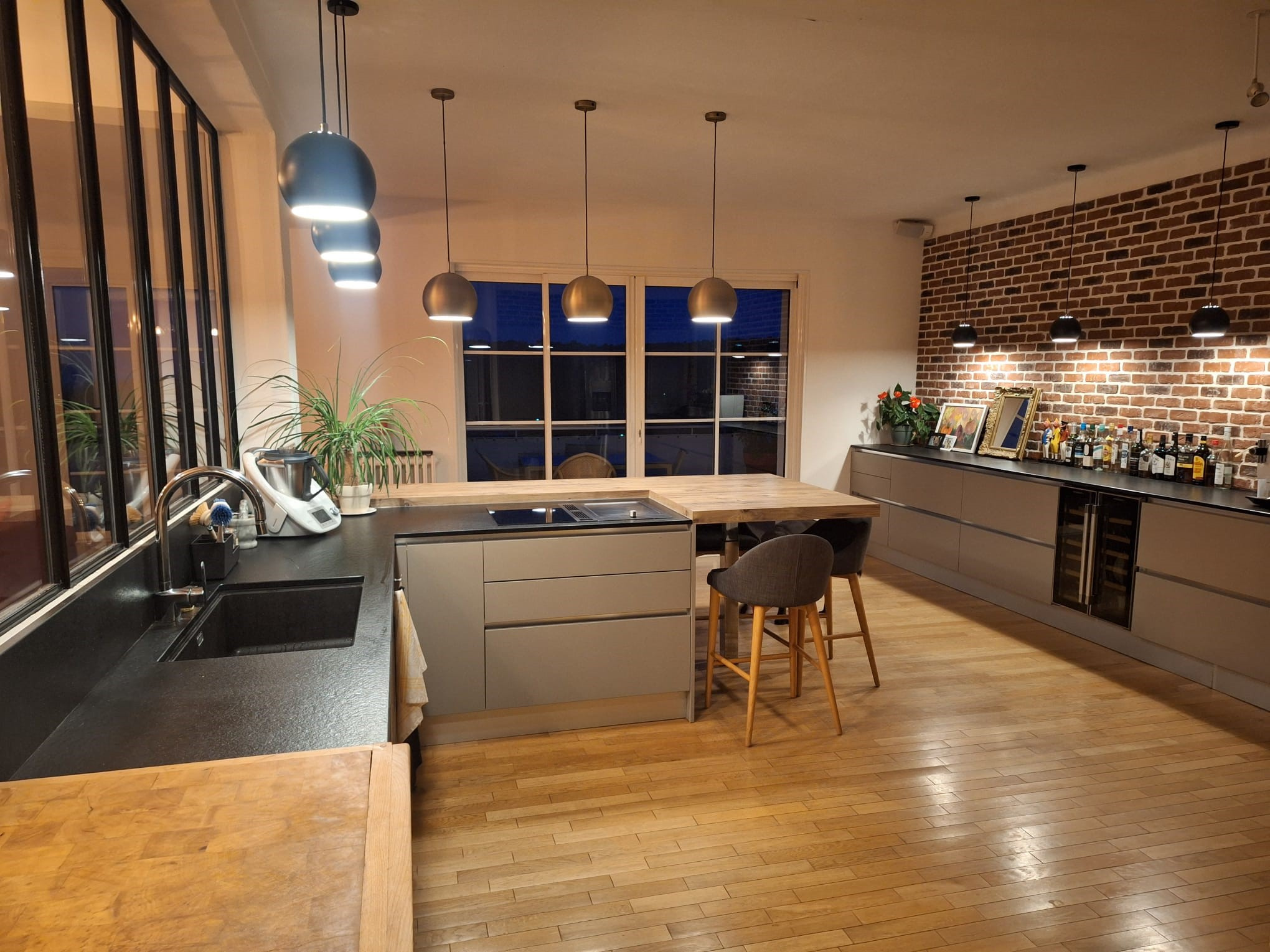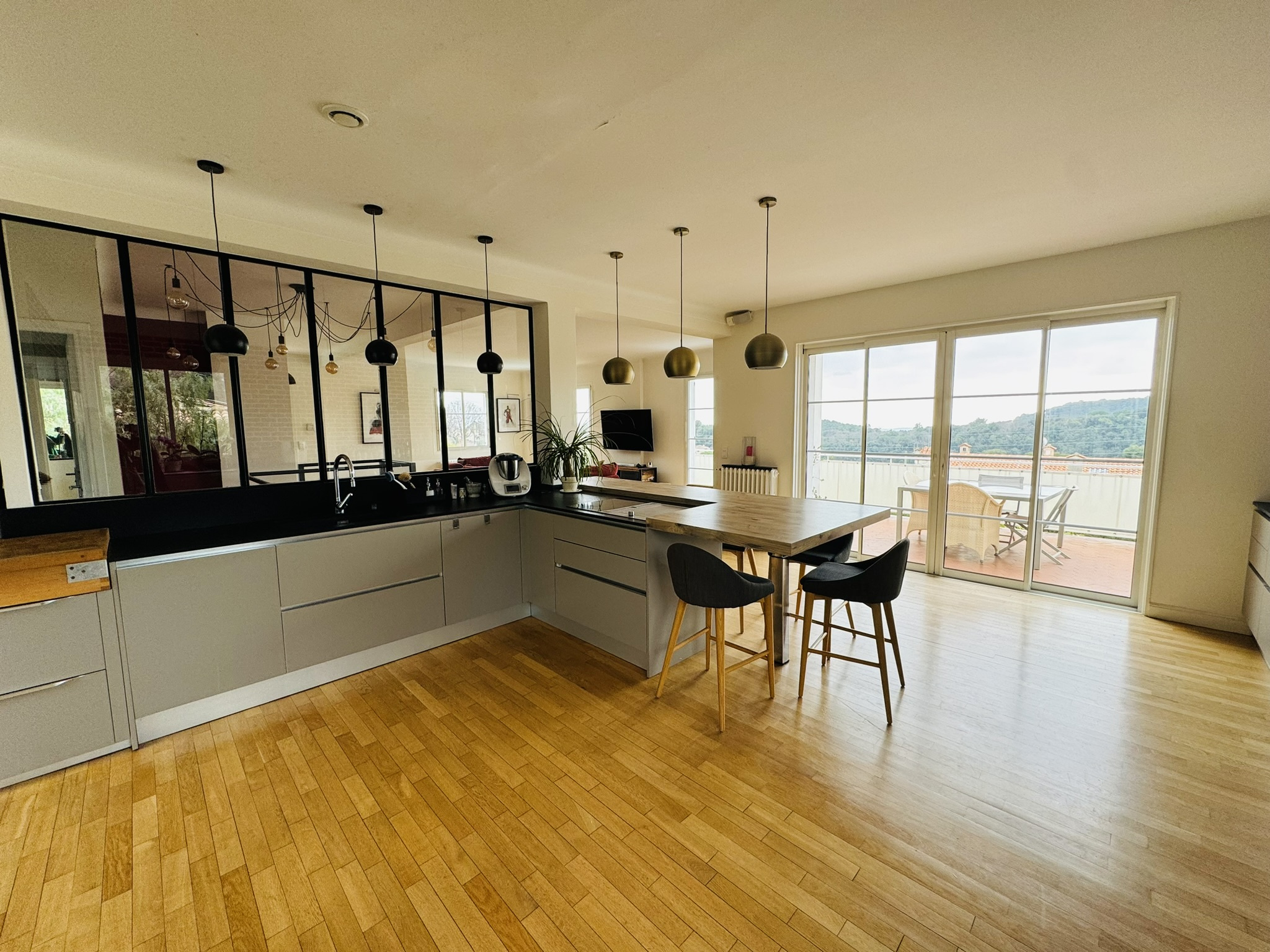 Nous retrouverons en Rez de chaussée, un magnifique salon - salle à manger avec à sa suite une très grande cuisine parfaitement équipée; l'ensemble étant ouvert sur une belle terrasse avec baies à galandage, face à une jolie vue dégagée. Une chambre, une salle d'eau aux prestations soignées, un wc indépendant.