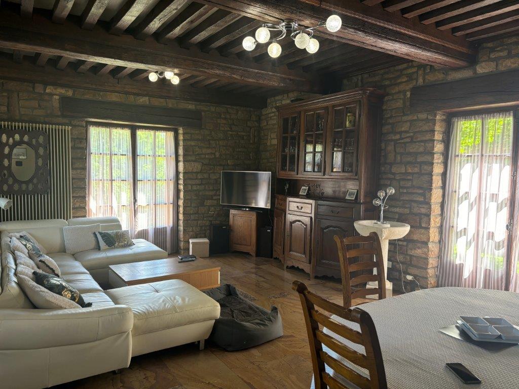 EN LISIÈRE DE CHALON SUR SAÔNE, Proche Varennes Le Grand, Magnifique réalisation (qualité et beauté de Bâti) sur un parc clos de + de 6100 m² (constructible) composée d'une grande pièce à vivre avec plafond à la française, cheminée Insert Bois accès terrasse, d' une cuisine équipée fermée accès terrasse, de deux chambres, d'une salle de bains/douches et d'un wc à son rez-de-jardin, de deux chambres, d'un dortoir , d'une salle de douches avec wc à son 1er étage - Le tout sur un sous sol complet (100 m² environ) avec garages, chaufferie/buanderie, atelier, cave..., un garage non attenant - Réf 1618 : Prix 457000 Euros honoraires agence inclus charge acquéreur - Prix hors honoraires :440 000 euros - Les informations sur les risques auxquels ce bien est exposé sont disponibles sur le site Géorisques