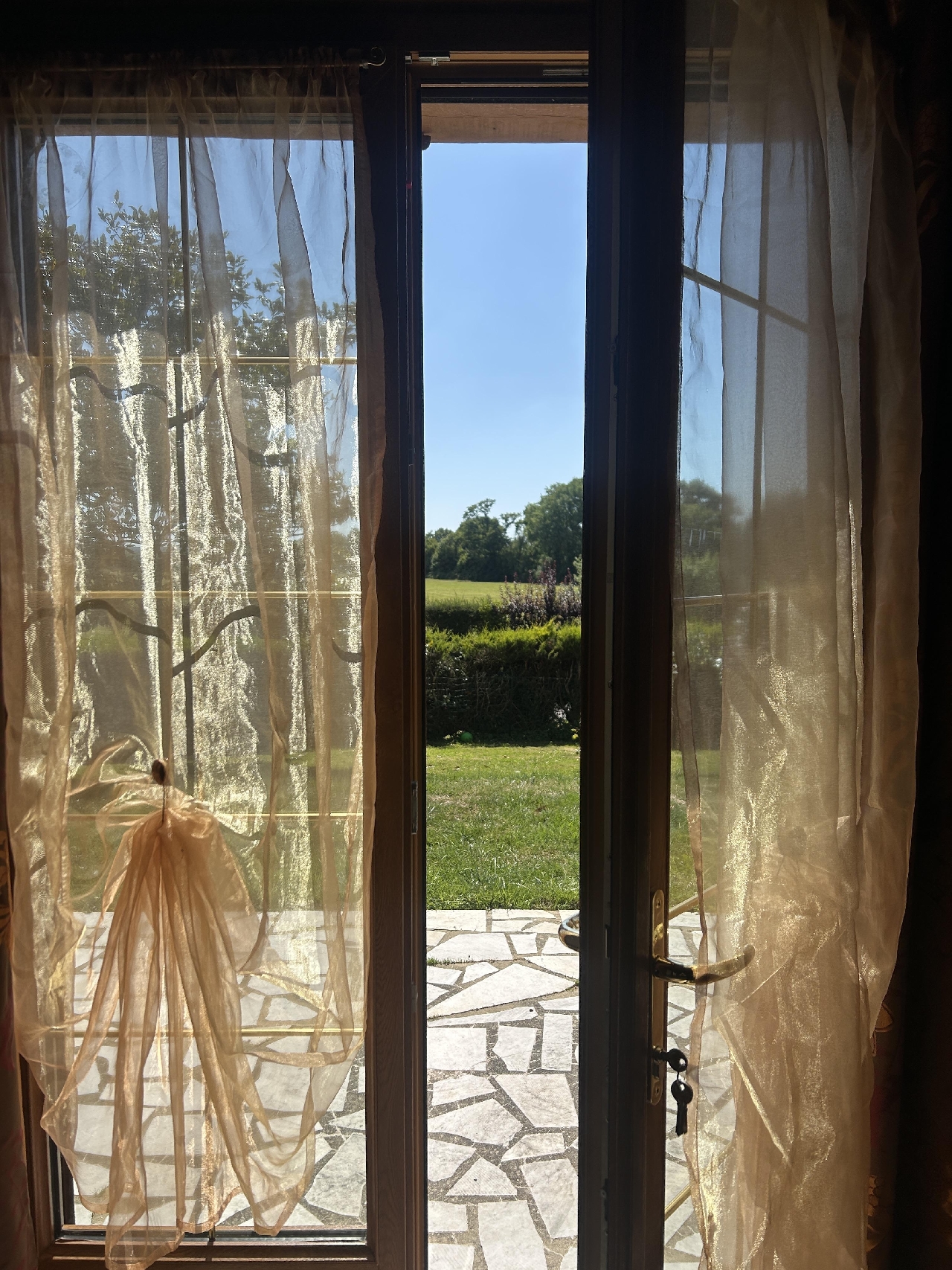 rez-de-chaussée : entrée, couloir, cuiqine aménagée et équipée, salle à manger avec insert, salon, deux chambres, salle d'eau, WC.