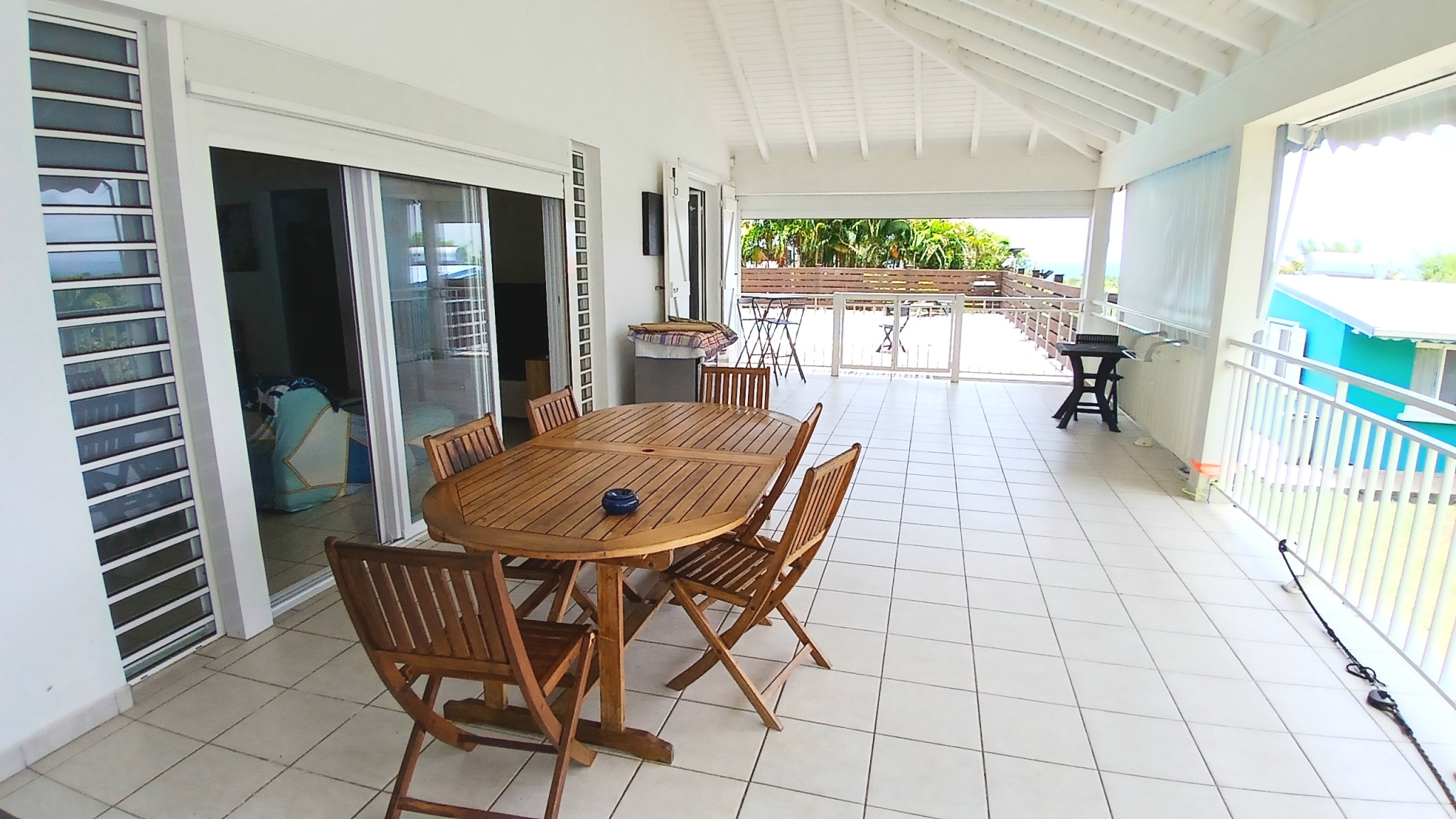 Très jolie maison récente (2014) située à Sainte-Rose, Section Duzer. Environ 170 m2 habitables. Grand séjour lumineux avec cuisine ouverte. Cellier attenant à la cuisine. Belle terrasse d'environ 40 m2 avec vue mer et montagne. 3 chambres, 3 salles d'eau, 3 WC. Piscine avec terrasse en deck. Terrain non clôturé de 2 500 m2. Terrain partiellement constructible. Deux bungalows 35m2 indépendants construit en 2019. Premier bungalow : séjour, cuisine indépendante, salle d'eau avec WC, terrasse. Deuxième bungalow : séjour avec kitchenette, une chambre, salle d'eau avec WC, terrasse. Cadre calme et verdoyant. Idéal pour investissement locatif ou projet familial. À découvrir rapidement !