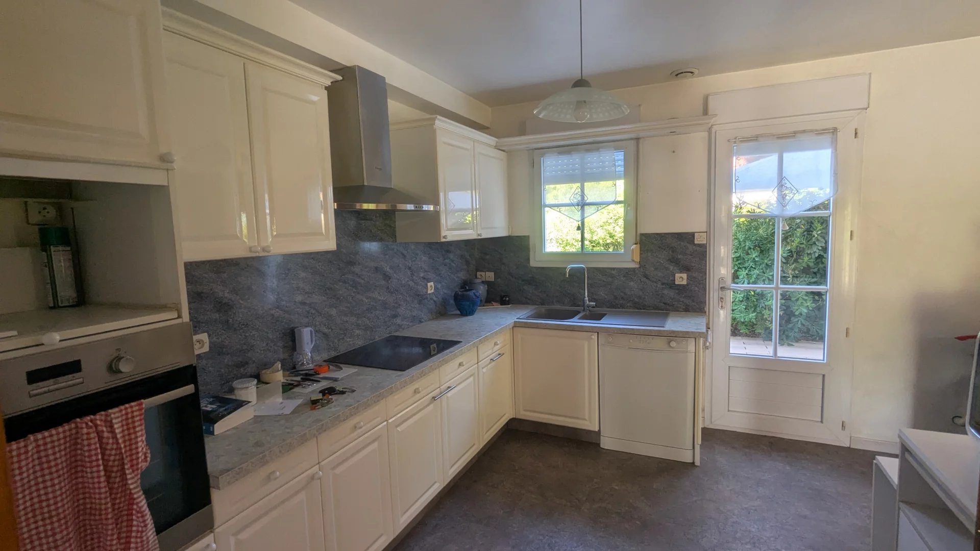 MAISON DE QUALITE 150 M² habitables sur joli terrain clos de 800 M² arboré et agrémenté avec portail électrique comprenant une entrée avec rangements donnant sur agréable séjour lumineux de 40 M² avec baies vitrées ouvrant l'accès à 2 terrasses et pergola, poêle à pellets récent en place, une cuisine aménagée et équipée avec électroménager, une chambre au rez-de-chaussée avec salle d'eau attenante refaite récemment.