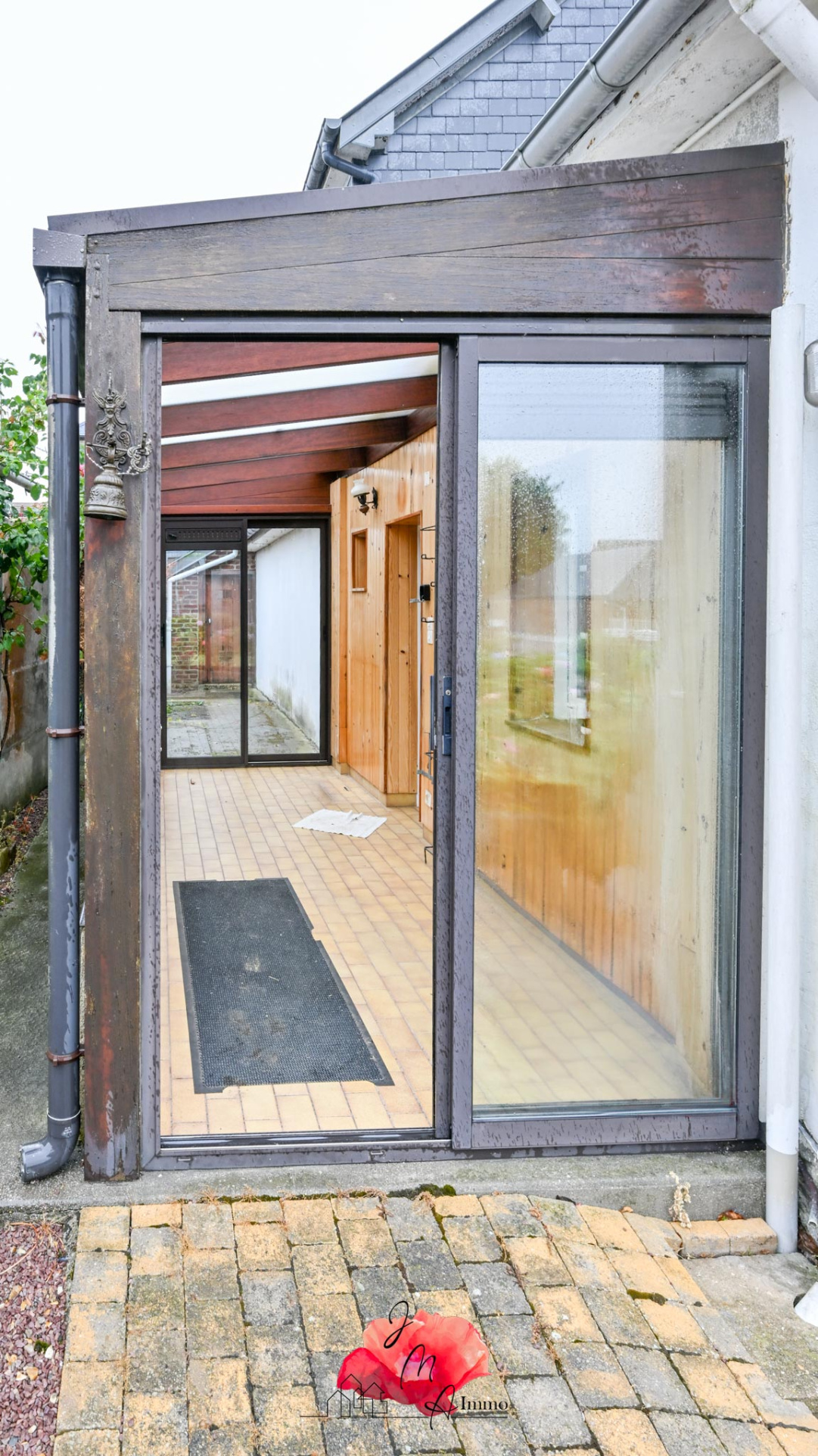La maison se compose d'une entrée accueillante par une véranda lumineuse, d'un séjour chaleureux avec cheminée, d'un salon indépendant, d'une cuisine aménagée, de deux chambres, d'une salle de douche et de WC séparés.