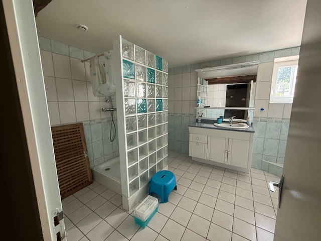 Une salle d'eau, des toilettes, une buanderie et un cellier viennent compléter les espaces de vie.