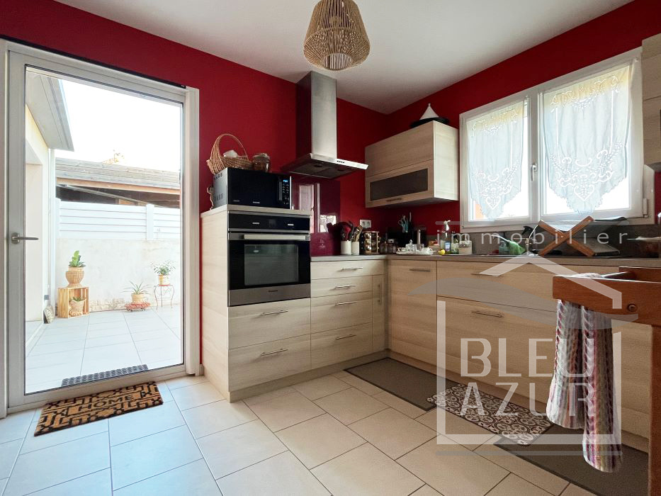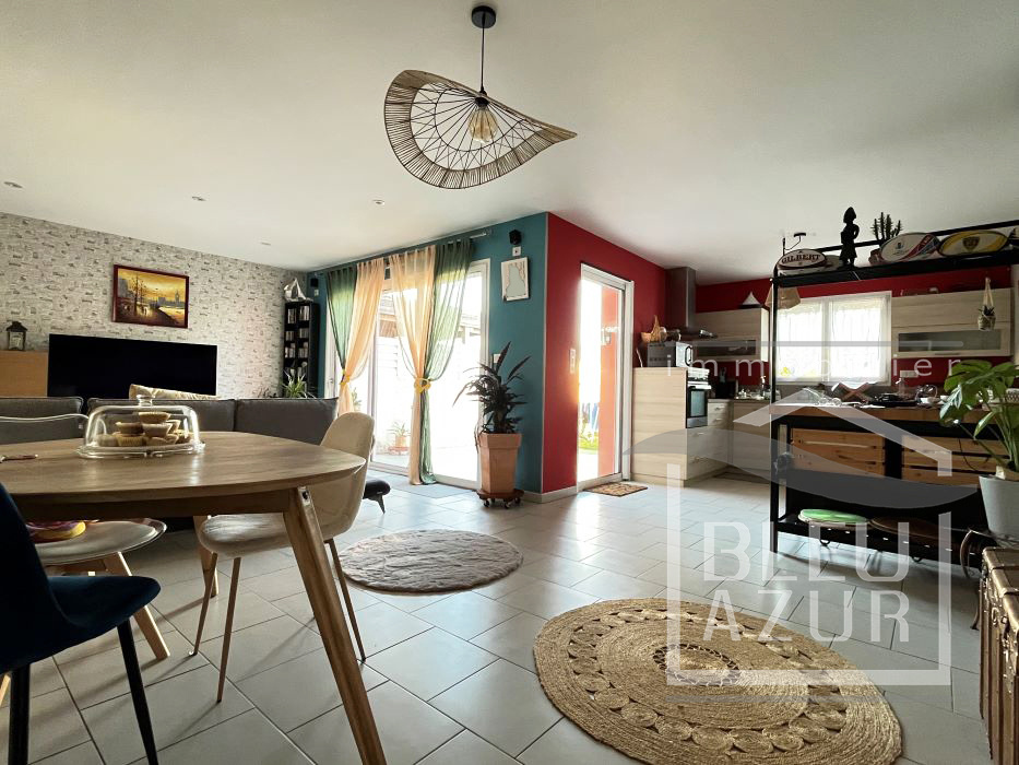 Dans un quartier résidentiel, au calme, contemporaine 'Année 2008' de 120 m2 habitables comprenant entrée avec placard, belle pièce de vie très lumineuse de 40 m2 avec cuisine ouverte aménagée et équipée, cellier, dégagement desservant bureau, suite parentale de 19 m2 avec dressing-salle d'eau, wc indépendant.