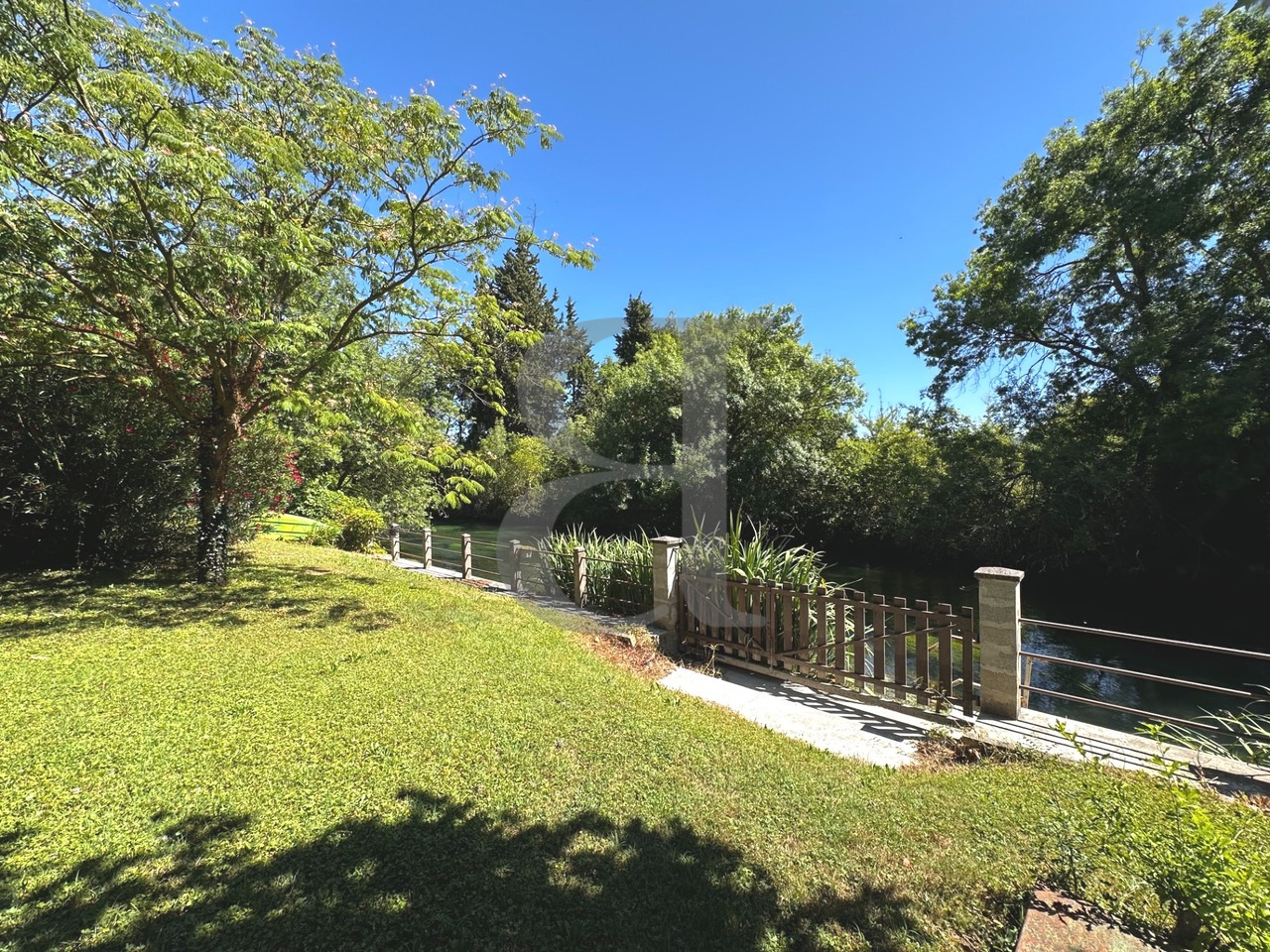 Côté extérieur, le charme opère immédiatement : un jardin arboré de 1 500 m², soigneusement entretenu, bordé par la Sorgue, sans aucun vis-à-vis. Vous y trouverez une piscine sécurisée, parfaite pour se rafraîchir en toute tranquillité, ainsi qu’un garage attenant.