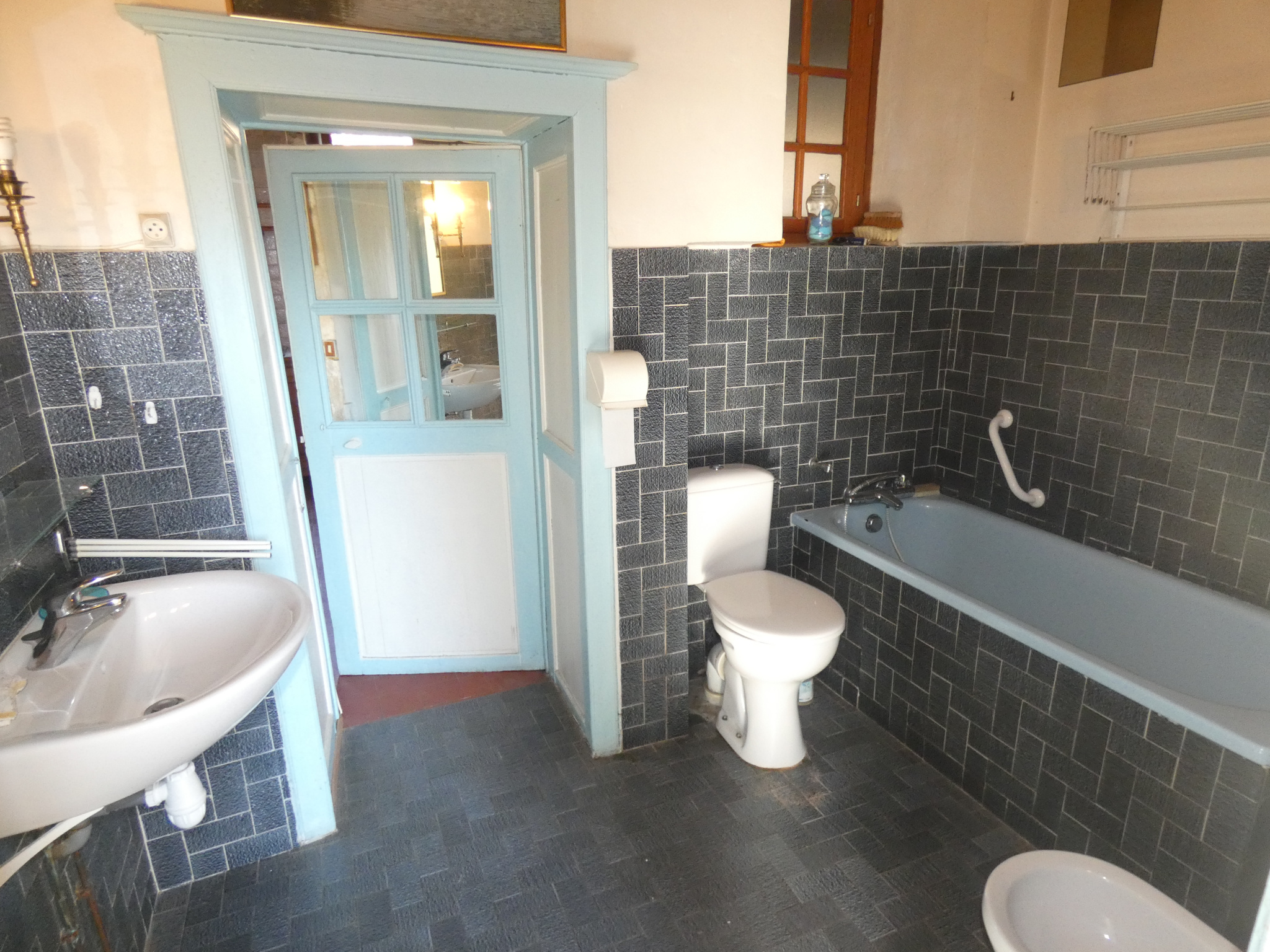 Une salle de bains et une salle d'eau avec WC,
