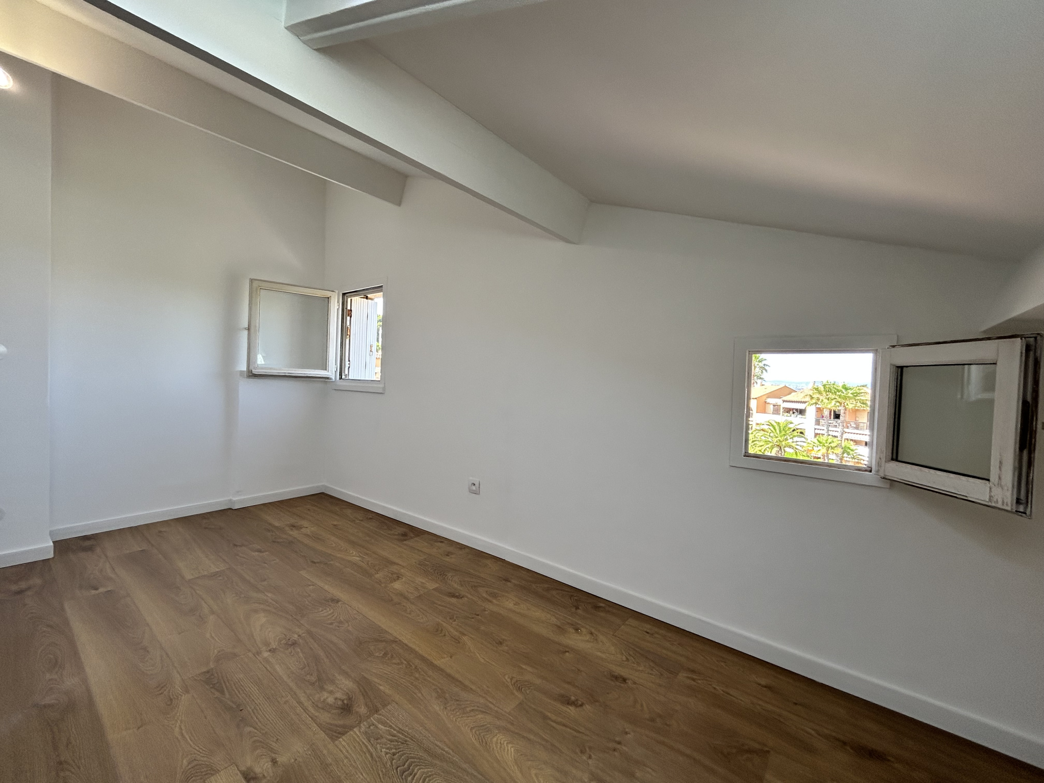 Retour à la vente, a deux pas de la plage de l'Almanarre, de la piste cyclable, du centre de Giens et de la Tour Fondue, appartement entièrement rénové de 57 m2 (hors loggia et sous pente) 65,19 au sol , situé au 2e et dernier étage d'une résidence bien entretenue.