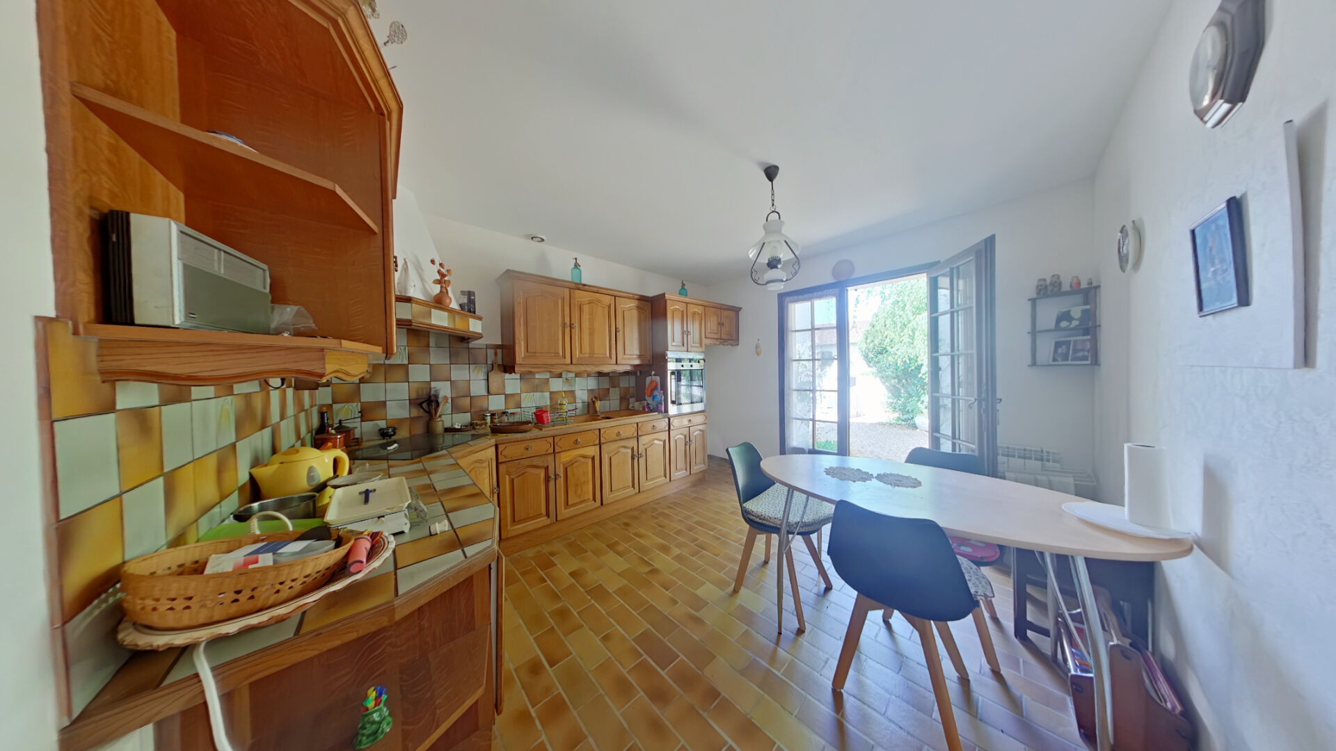 La pièce de vie de 35 m², traversante, bénéficie d'une belle luminosité naturelle et s'ouvre sur une terrasse à l'arrière de la maison, idéale pour vos moments de détente. La cuisine est indépendante, entièrement équipée et bien pensée pour le quotidien.