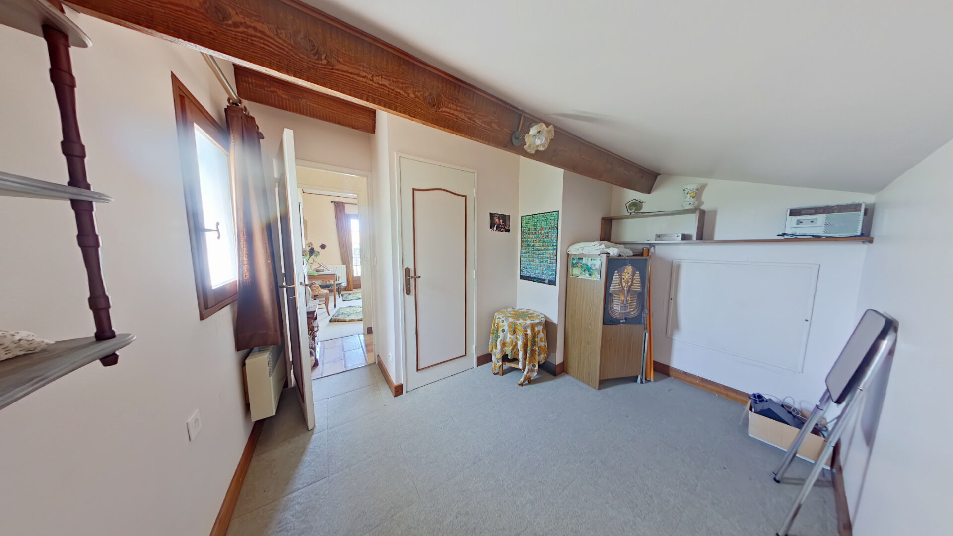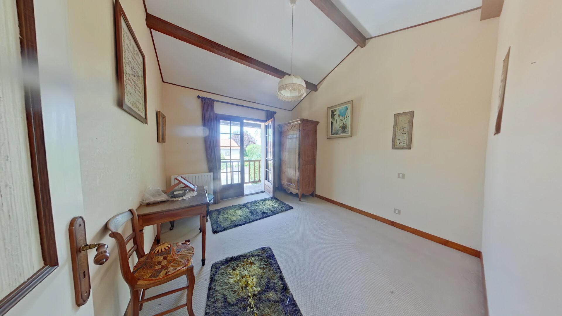 À l'étage, vous trouverez une seconde chambre avec un balcon privatif, ainsi qu'un grand bureau, parfait pour le télétravail ou pouvant être transformé en chambre supplémentaire selon vos besoins.