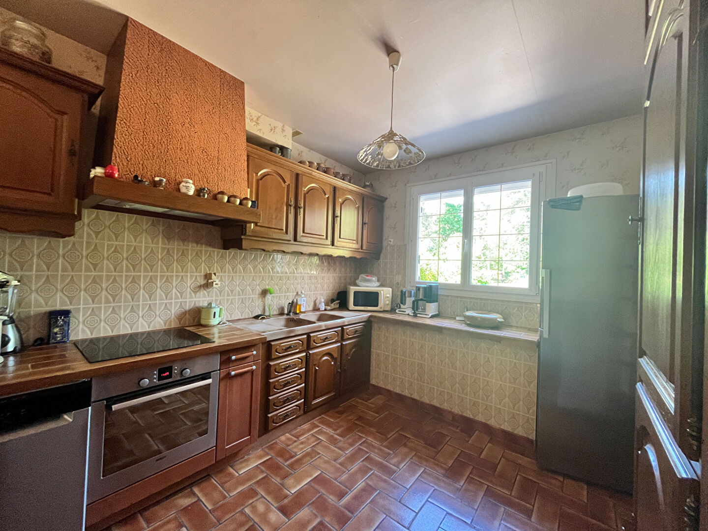 La maison est édifiée sur vide sanitaire , avec en rdc : entrée avec placard, cuisine aménagée et équipée, chaufferie-buanderie, wc, grand séjour salon avec cheminée insert, 2 chambres avec placards, salle de bains avec wc.