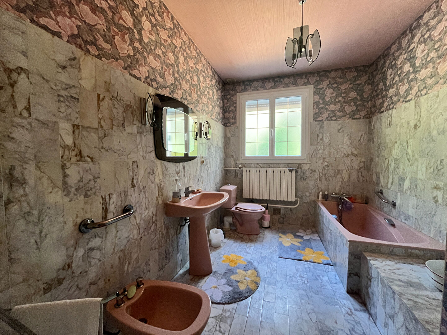 1er étage : palier, wc, chambre avec cabinet de toilettes et wc privatif, grande salle de jeux, greniers, cave en dessous. Terrain clos autour de la maison avec portail auto.