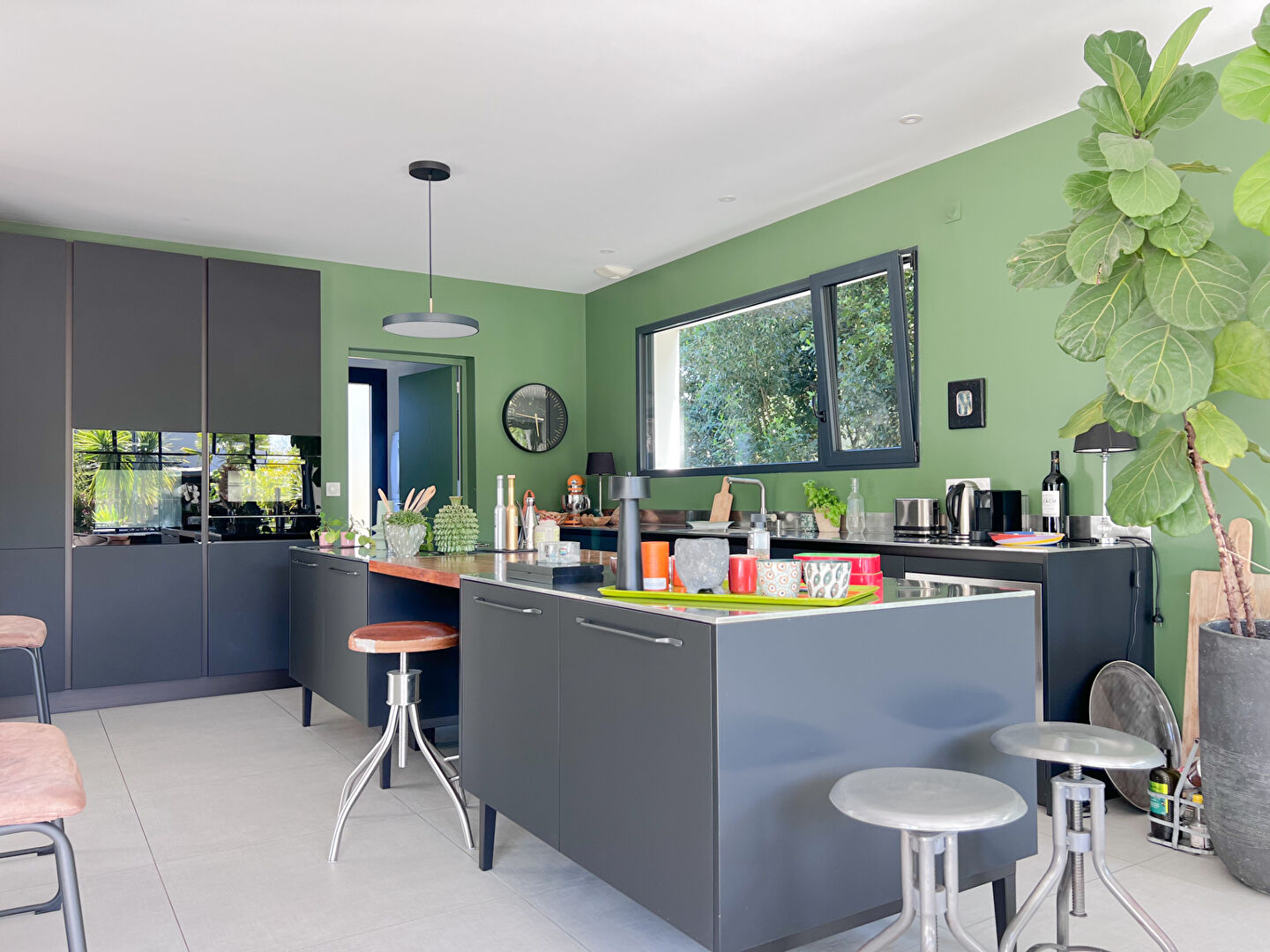 Nichée au coeur d'un magnifique jardin paysager de 1250 m², cette propriété offre un cadre de vie rare, où la nature côtoie l'architecture moderne. Une piscine chauffée s'intègre harmonieusement dans ce décor végétalisé, idéal pour profiter pleinement des beaux jours.