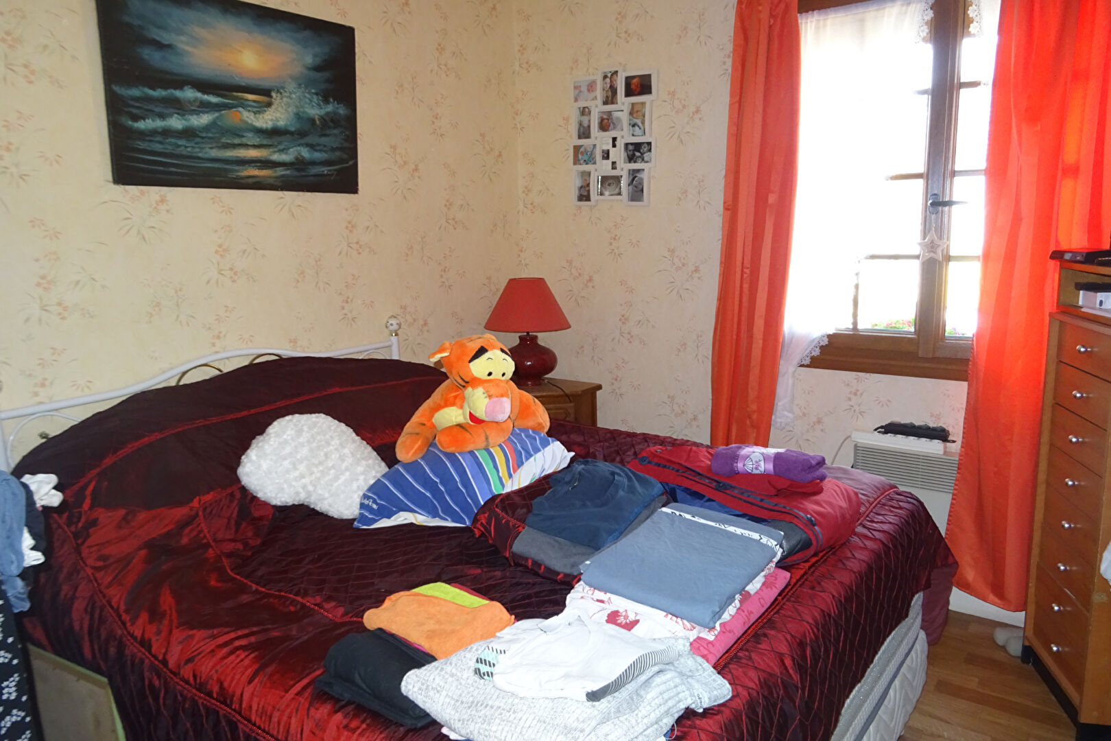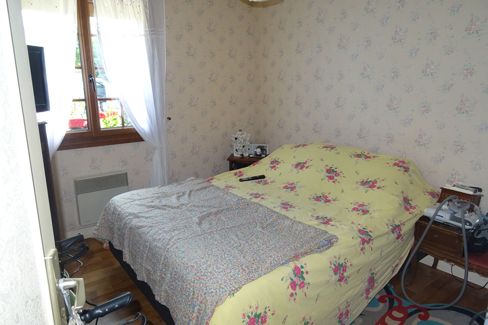 Maison de plain-pied construite en 1992, élevée sur sous-sol, comprenant entrée, cuisine aménagée, séjour-salon avec cheminée insert, 3 chambres, sde, wc. Grenier aménageable. Chauffage électrique. Menuiseries pvc avec volets roulants électriques. Terrain de 578 m² avec terrasse sur l'arrière.