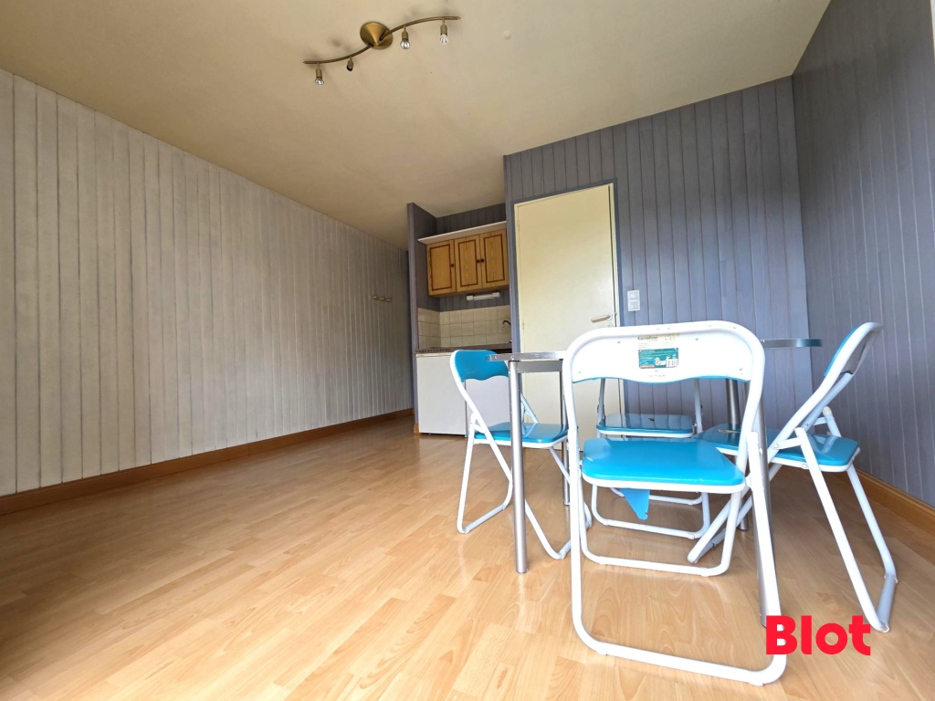 Une pièce de vie lumineuse ouvrant sur un balcon exposé Ouest, une kitchenette pratique, une salle d'eau avec WC.