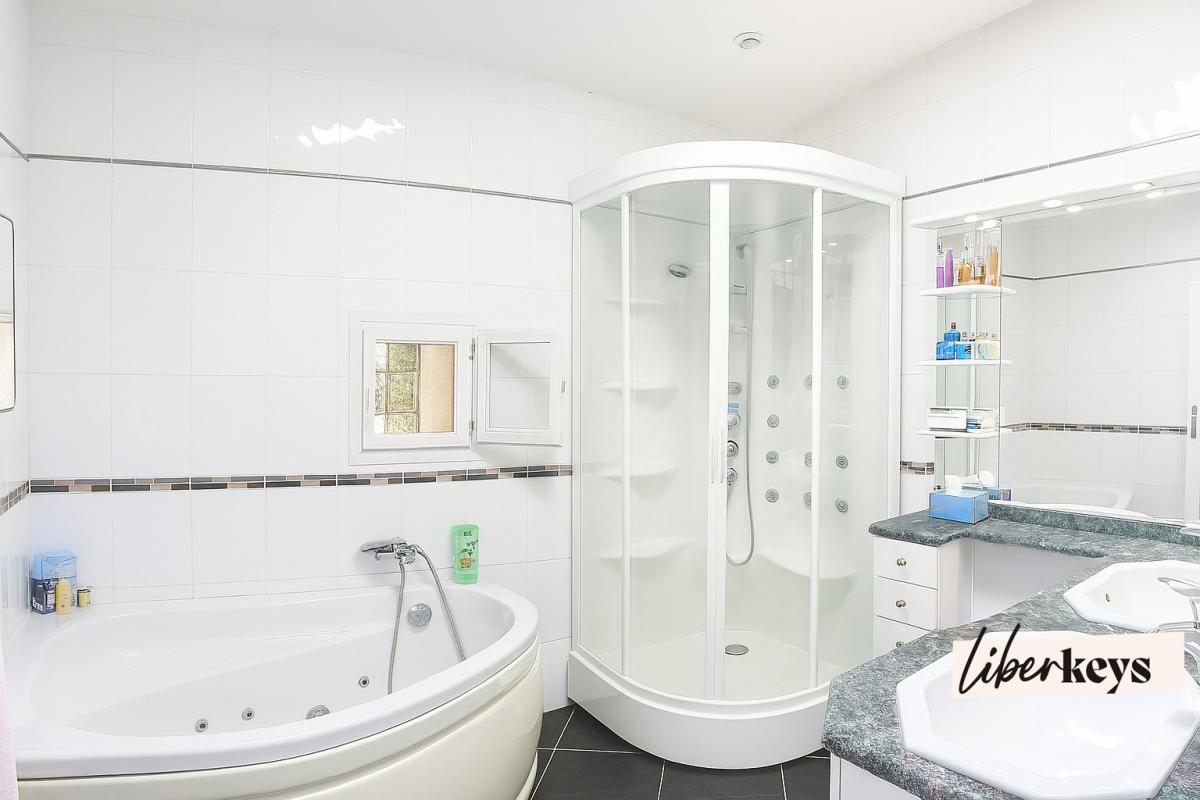 Mais le véritable clou du spectacle se révèle au dernier niveau. Une immense baie vitrée, orientée plein lac, efface les limites entre intérieur et paysage. On y ressent l'étrange sensation d'avoir les pieds dans l'eau, porté par le silence du lieu. Cet étage indépendant comprend aussi une seconde entrée, une grande pièce de vie avec cuisine américaine, un dressing, une chambre, et une salle de bains haut de gamme (douche hammam, baignoire balnéo, double vasques, WC séparé).