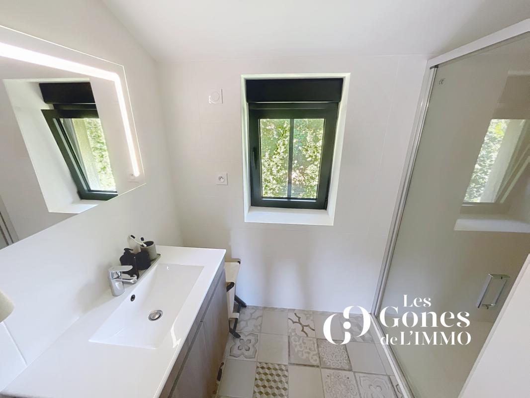 D'une surface habitable d'environ 100 m2, cette maison lumineuse et traversante s'ouvre au rez-de-chaussée sur une cuisine équipée moderne, attenante à une buanderie. Le séjour spacieux donne accès à deux terrasses parfaitement exposées, une au Sud pour profiter du soleil et la seconde au Nord pour des moments de fraîcheur en été.