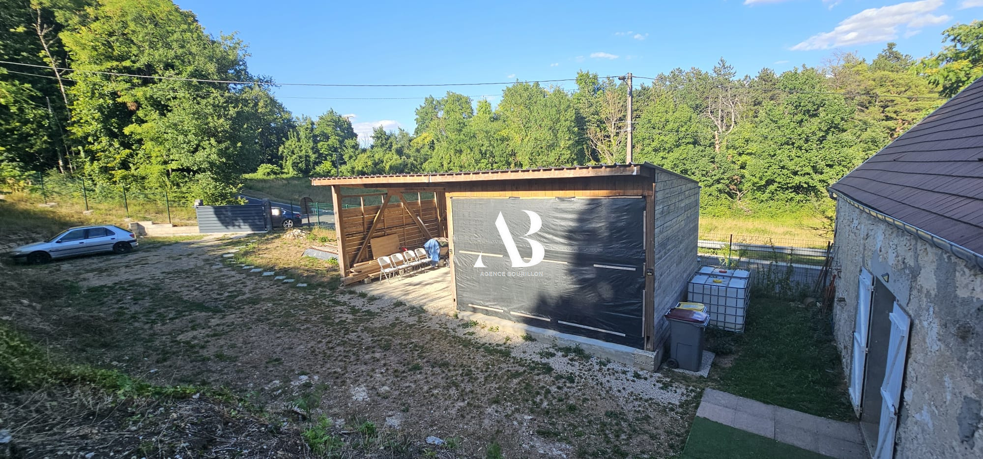 À l'extérieur : Vous bénéficiez d'un hangar ouvert d'environ 40 m2 pouvant accueillir vos véhicules, ou bien le transformer selon vos envies.
