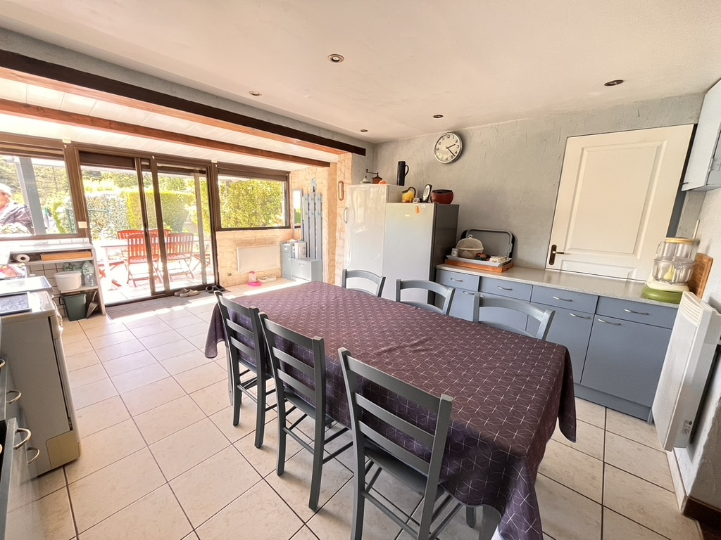 UNE MAISON de PLAIN-PIED superficie de 120 m2, alliant l'esprit de l'ancien à la fonctionnalité d'aujourd'hui; Espace de vie avec cuisine aménagée et équipée donnant sur terrasse abritée, salle à manger, séjour, deux chambres avec dégagement et dressing, une salle d'eau et un wc indépendant. Cellier. GARAGE vaste avec rangement .Une annexe indépendante avec salle d'eau et wc. Superbe terrain arboré de 1850 mètres carrés avec partie potager. Abri de jardin.