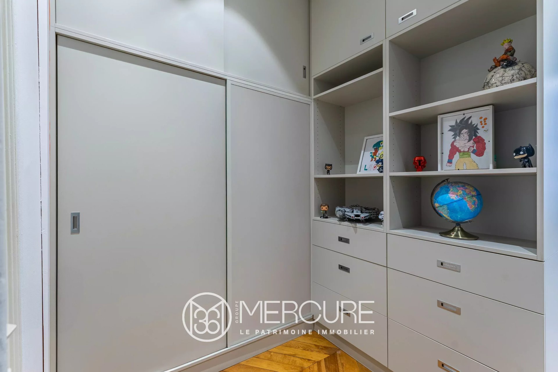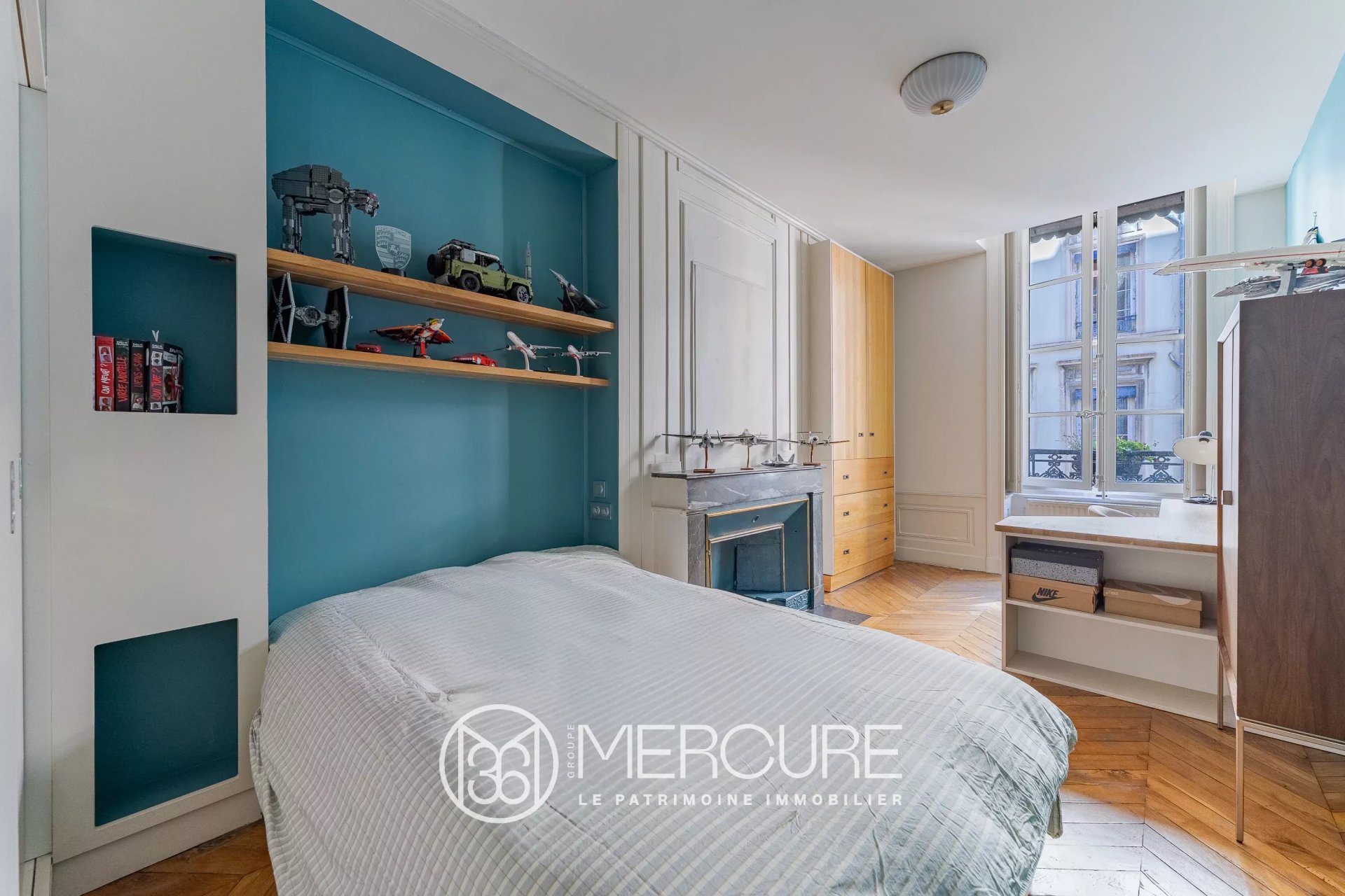 Rénové avec soin en 2019, il séduit par sa décoration soignée, ses boiseries d’époque, son parquet en point de Hongrie, ses belles hauteurs sous plafond, et sa lumière traversante.