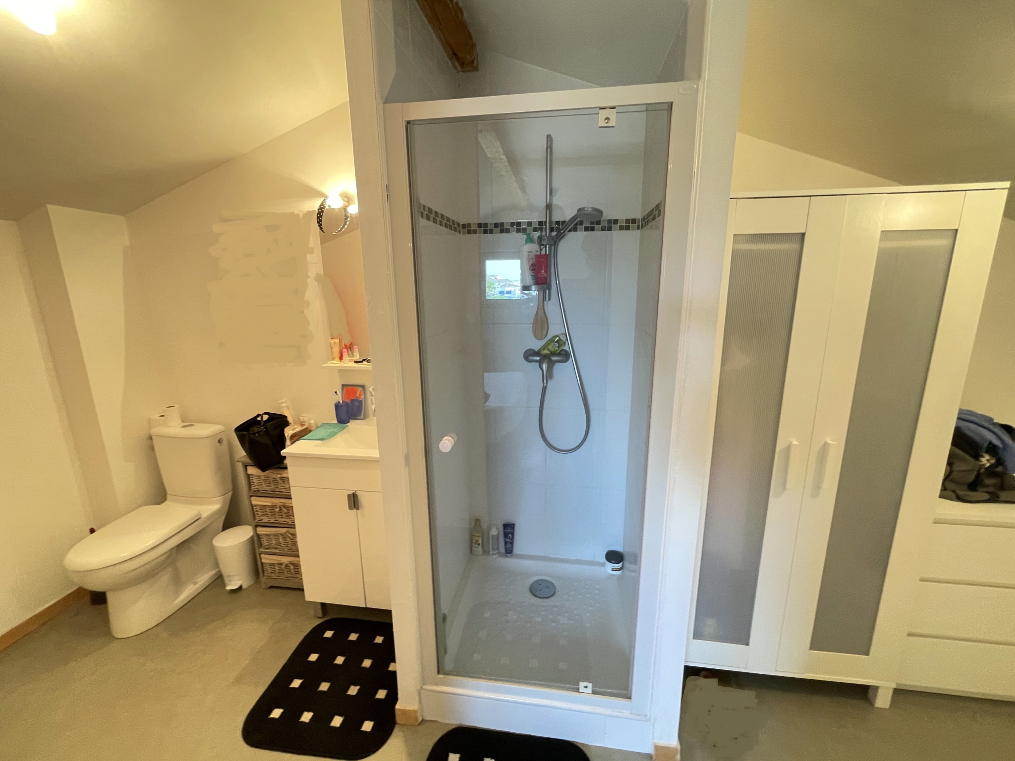 une buanderie, une douche et un WC séparé sont dédiés à l'usage privatif des deux chambres de plain-pied