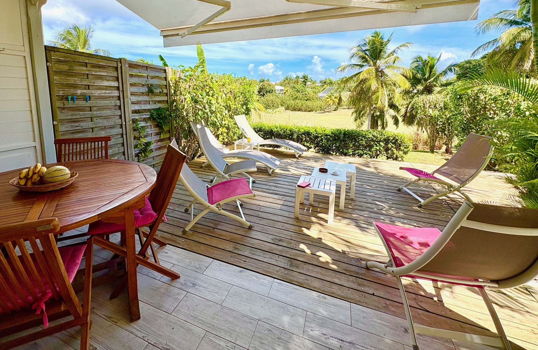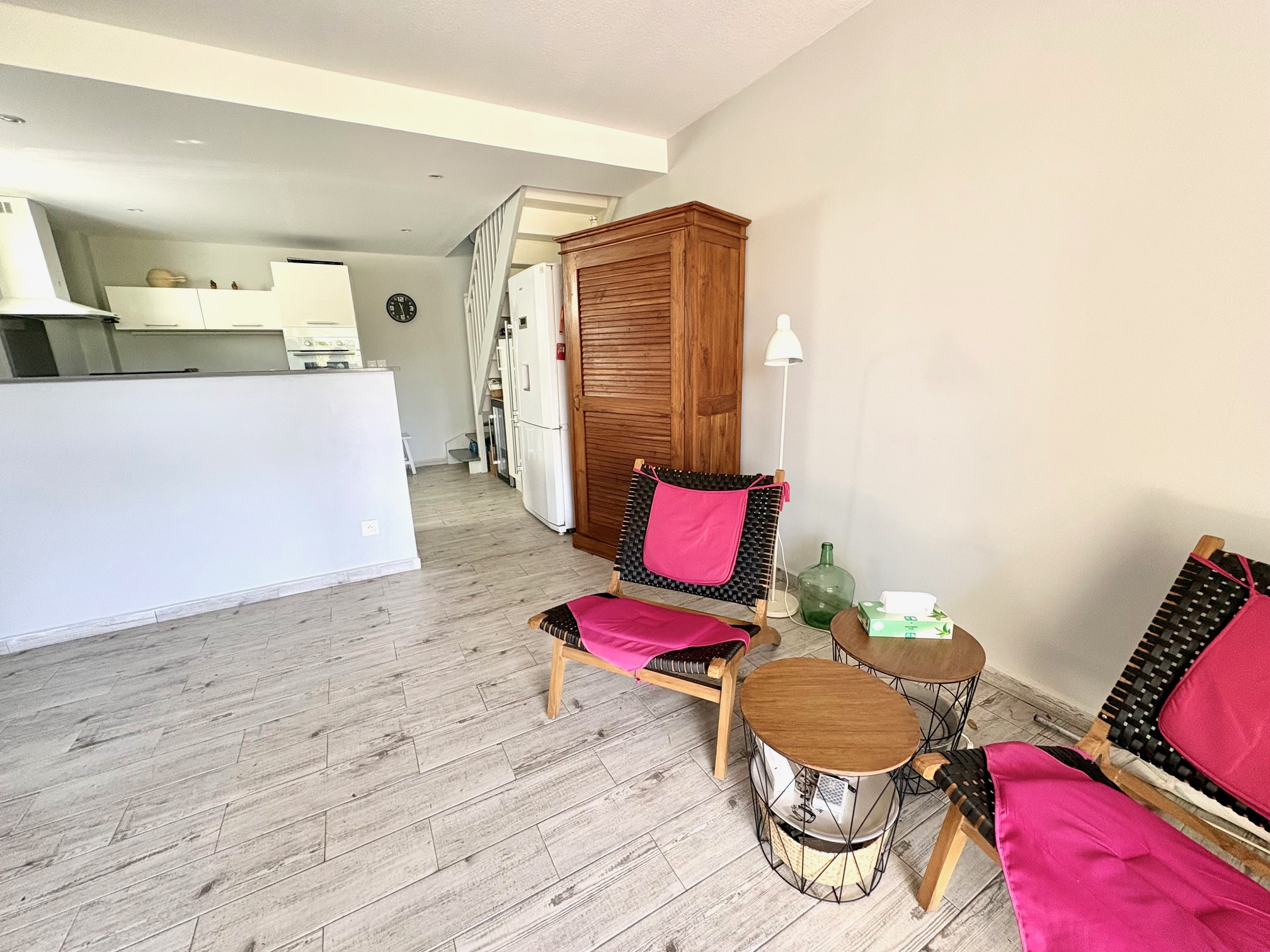 Magnifique appartement T2/3 duplex de 60 m2 env., bénéficiant d'une très jolie vue sur le golf, proche de la Marina et des commerces. Composé d'une entrée avec placard, 1 pièce climatisée pouvant servir de seconde chambre et bureau, 1 belle chambre climatisée équipée de grands placards prolongée d'une terrasse vue sur le golf, 1 salle d'eau, 1 WC séparé ; au RDC 1 salon climatisé avec 1 grande cuisine américaine contemporaine, 1 magnifique terrasse prolongée d'un grand deck entouré de végétations. Stationnement privé numéroté. Pour plus d'informations contacter Laurence CAILLET par WHATSAPP et SMS au +590 690 002 312 ou par SMS au 0690 35 97 18 et par mail : laurence@immo971.com et/ou cailletlo971@gmail.com en laissant vos coordonnées et l'objet de votre appel.