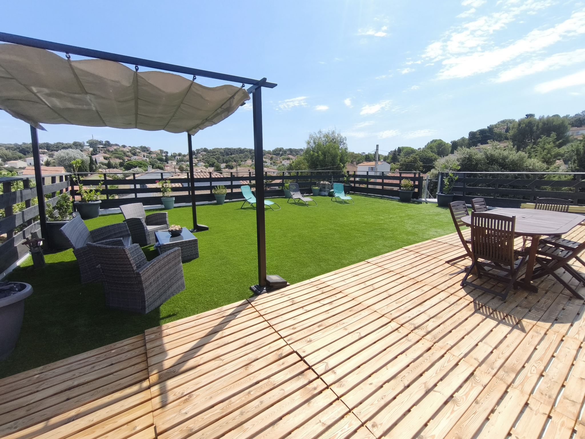 LA SEYNE SUR MER PROCHE SIX FOURS LES PLAGES - Superbe haut de villa T4 de 117m2 habitables. Il se compose d'un hall d'entrée, d'un vaste salon/séjour avec poêle à bois, d'une cuisine ouverte aménagée et équipée ouvrant sur une terrasse, de trois chambres dont une suite parentale, d'une seconde salle d'eau, wc. Double vitrage + climatisation réversible. LE + = Vous profiterez d'un superbe toit terrasse privatif de 140m2 ! 3 stationnements. Très faibles charges. Extrêmement rare sur ce secteur! Contacter JULIEN ESNAULT 07.85.87.44.23