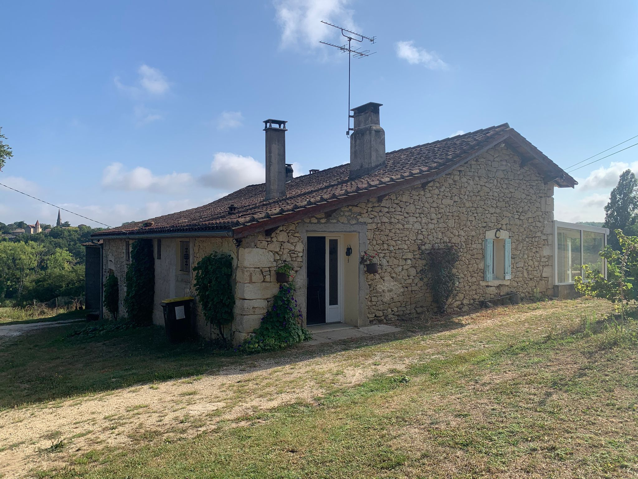 REF : 244 - Avec beau point de vue sur le charmant village de Ruch, venez découvrir cette jolie maison girondine, à rafraîchir, de 100 m2, comprenant : Salon de 18 m2, cuisine de 17 m2, véranda de 14 m2, 3 chambres de 12 m2 à 17 m2 (en enfilade), salle d'eau de 5,3 m2 avec douche italienne, WC. Deux caves en sous-sol et diverses dépendances totalisant 130 m2 : garage attenant de 74 m2, souillarde de 19 m2, chaufferie de 21 m2, atelier. Puit avec pompe, chauffage fuel et bois (insert), menuiseries PVC double vitrage, assainissement individuel. Le tout est complété par un jardin de 5 300 m2, situé dans un environnement calme, sans vis à vis et doté d'une magnifique vue dégagée sur la campagne environnante ! Contactez Immobilier des Bastides, à Sauveterre de Guyenne au 05 56 61 26 73 !