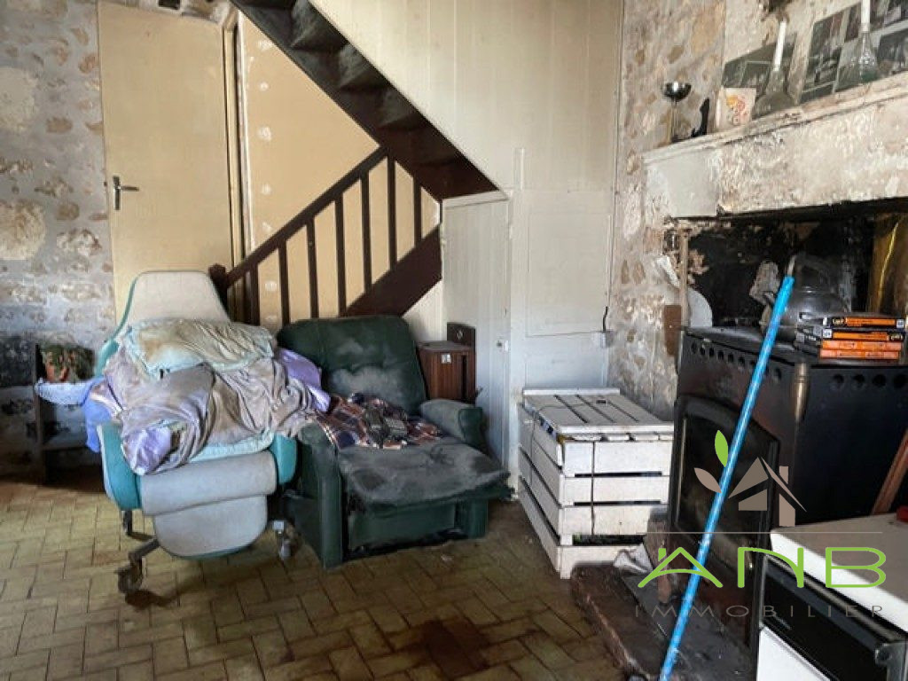 Située dans un bourg de la campagne charentaise, cette maison sur 3 niveaux comprend : - au rez-de-chaussée : pièce de vie avec coin cuisine, cheminée avec poêle - espace chambre et salle d'eau. - au premier étage, une grande pièce - grenier aménageable. - Jardin attenant de 300 m² + terrain supplémentaire de 1394 m²