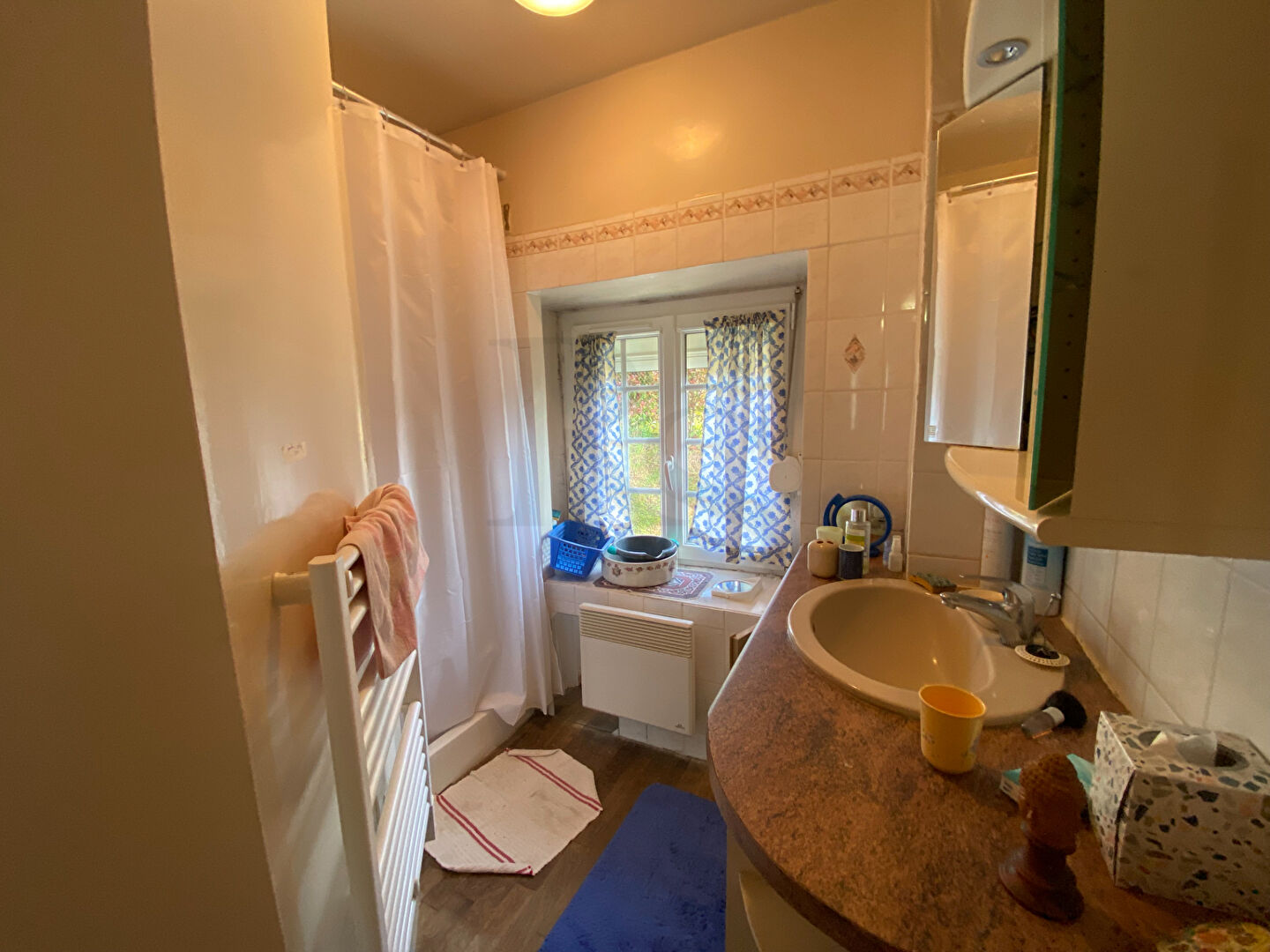 - Une première maison en pierre et couverte en tuiles comprenant au rdc : 2 chambres, une salle de bains et WC