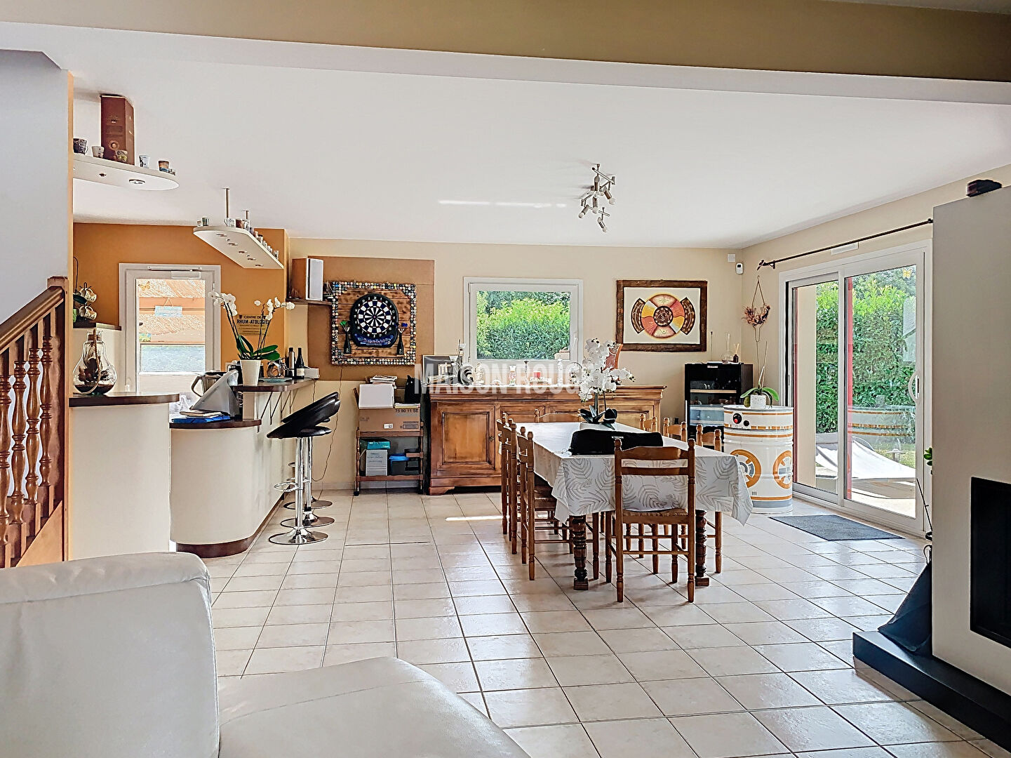 Au rdc : un grand salon-séjour avec cheminée (insert bois) , une cuisine aménagée et équipée , une arrière cuisine , une buanderie , une chambre et une salle d'eau avec douche a l'italienne et dressing , deux WC , un garage et espace de rangement au dessus.