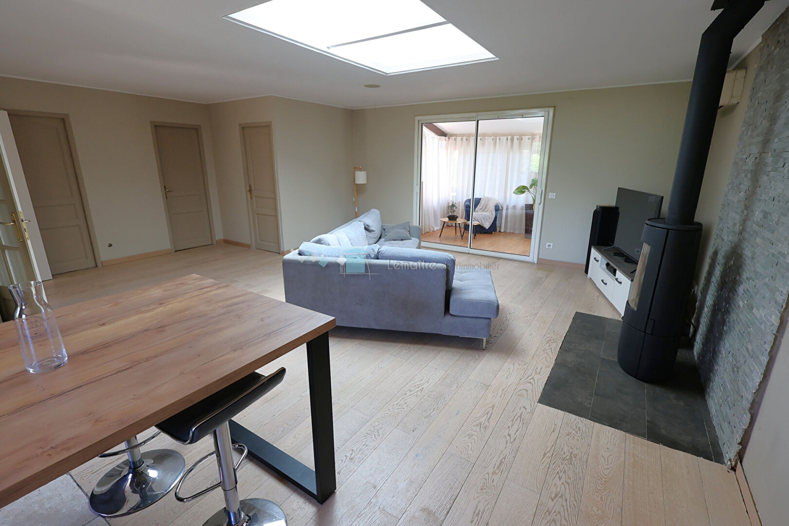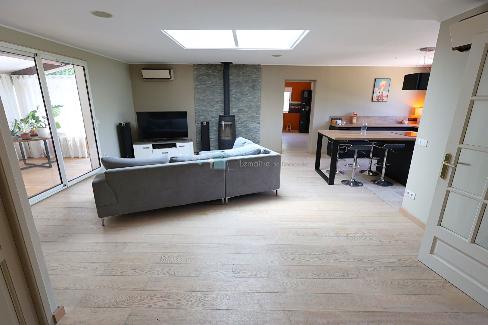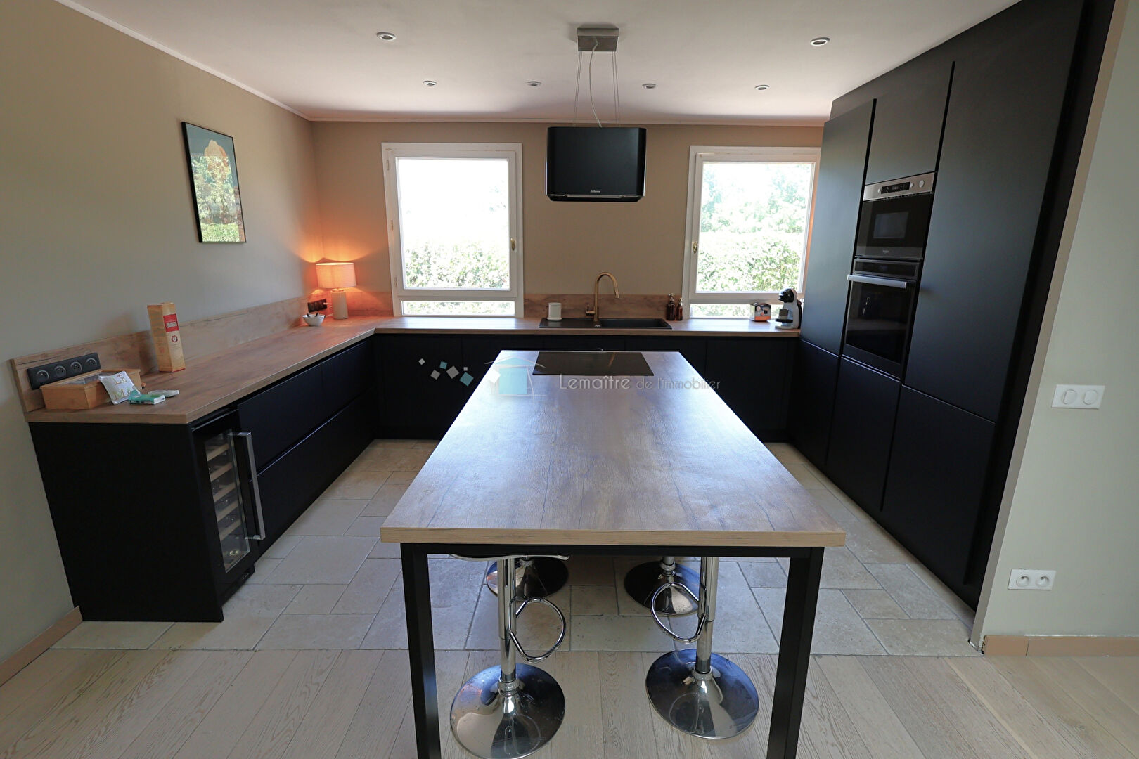 Jolie maison d'une superficie habitable de 130 m², de plain pied, au calme au fond d'une impasse. Comprenant: une entrée, une cuisine aménagée et équipée ouverte sur vaste séjour avec poêle à bois, une véranda, 3 chambres et placards, une salle de bains avec douche, cabinet de toilettes, une buanderie,