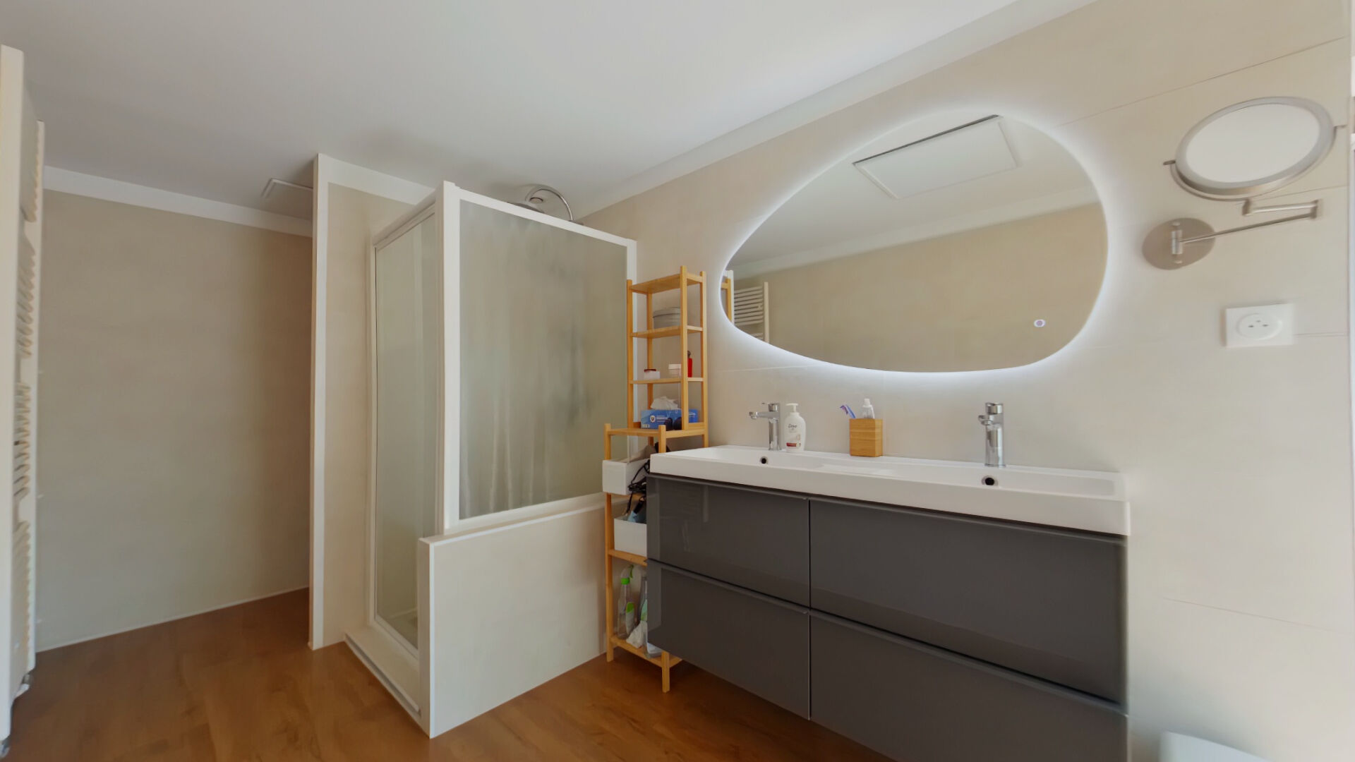 Développant plus de 300 m² habitables sur deux niveaux, elle offre des espaces généreux et lumineux :