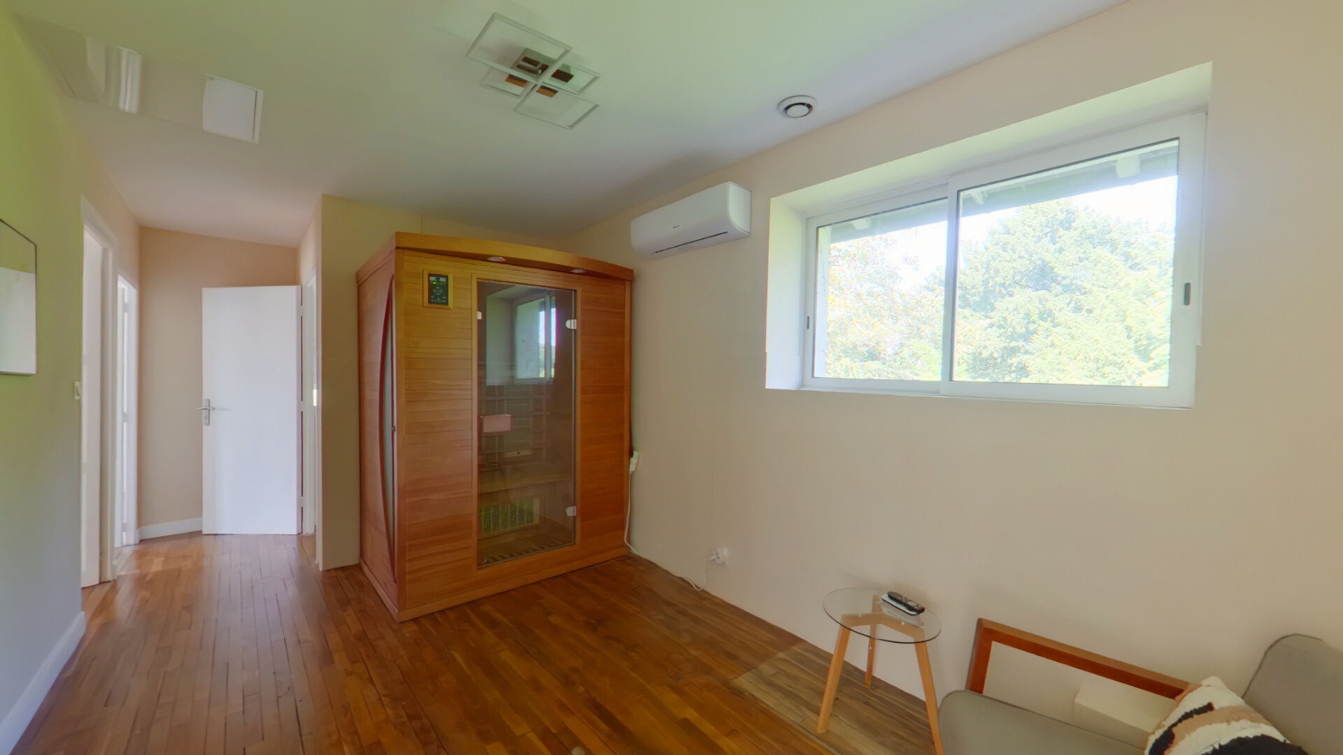Côté équipements : pompe à chaleur, climatisation, gaz de ville, adoucisseur d'eau, réserve d'eau de 22 m³.