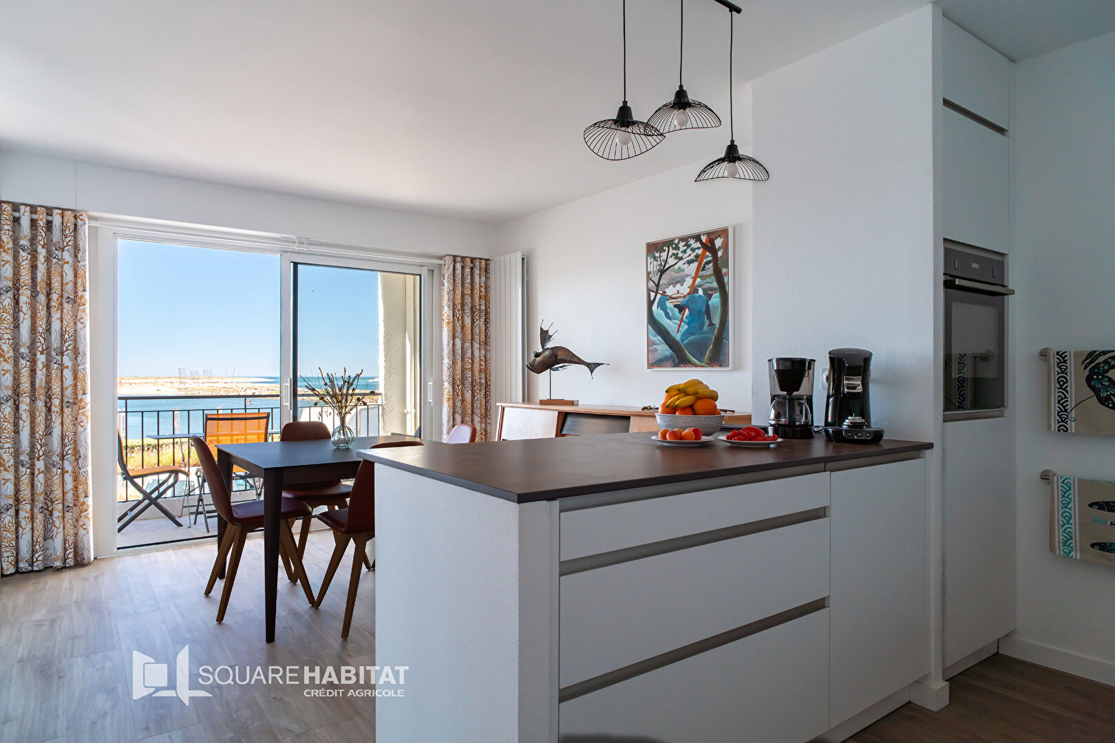 ETEL - Ce véritable écrin entièrement rénové avec des matériaux de qualité vous accueillera avec SA VUE PANORAMIQUE sur le plan d'eau et la barre d'ETEL. Il est situé au 1er étage d'une résidence avec ascenseur offrant une entrée, une cuisine aménagée ouverte sur une salle à manger donnant sur une loggia , un salon avec balcon , de 2 chambres avec placards, d'une lingerie / dressing , toilettes, une salle de bain. 2 caves et 2 emplacements de parkings dont un couvert. ACCES IMMEDIAT A LA PLAGE - Uniquement chez SQUARE HABITAT