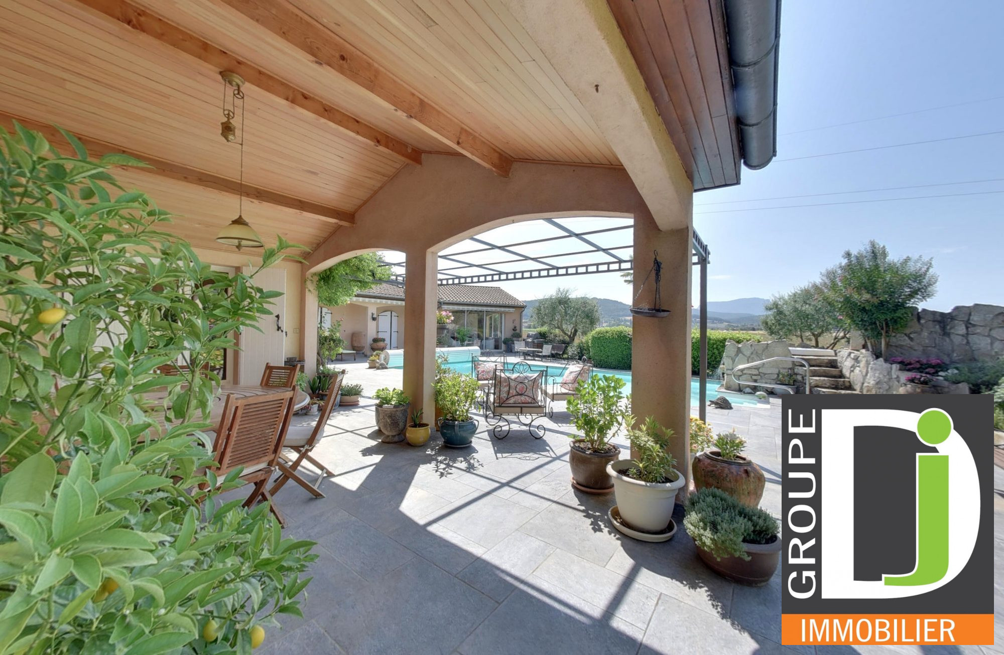 Les extérieurs sont pensés pour la détente et la convivialité : piscine 10x5 m chauffée par pompe à chaleur, jacuzzi, terrasse plein sud, jardin sans vis-à-vis, carport, garage, local technique et abris complètent l'ensemble.