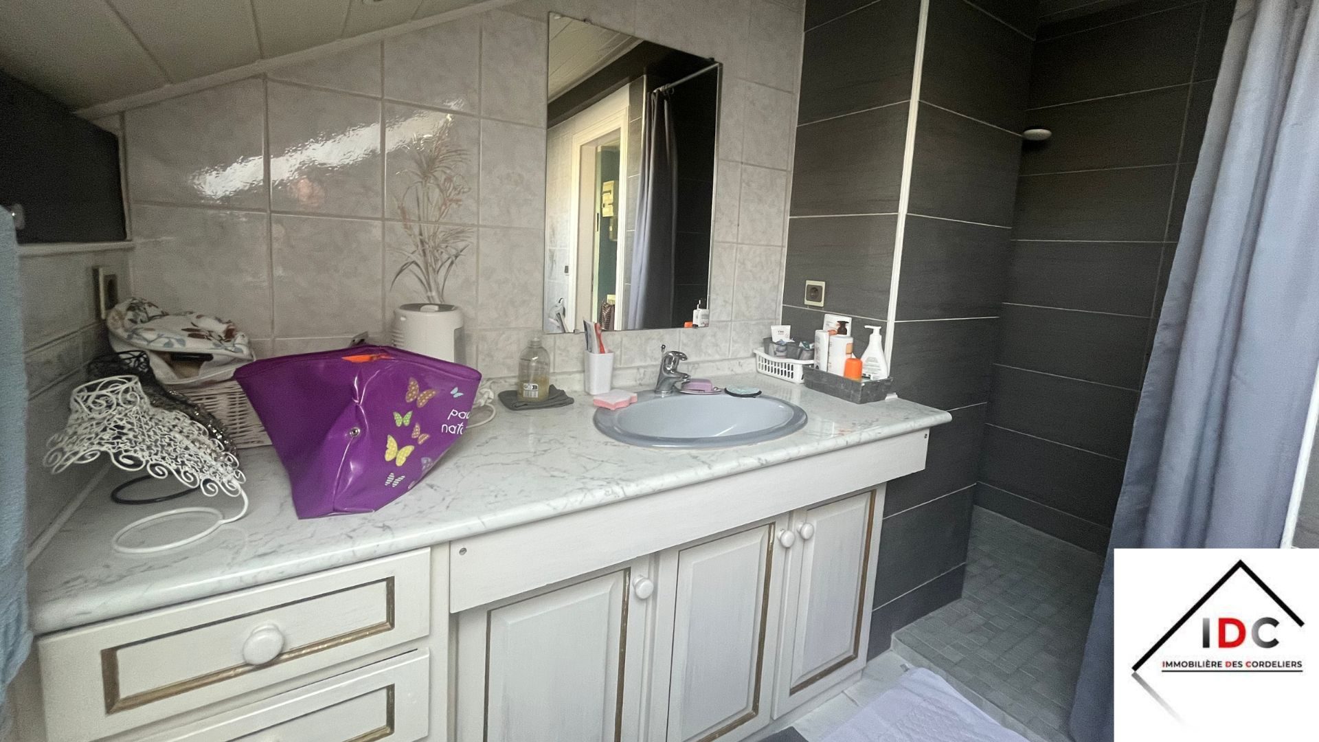 Au sous sol : un dégagement; une grande chambre avec placards intégrés et sa salle de bain privative + wc; ainsi qu'un espace de stockage avec coin chaufferie.