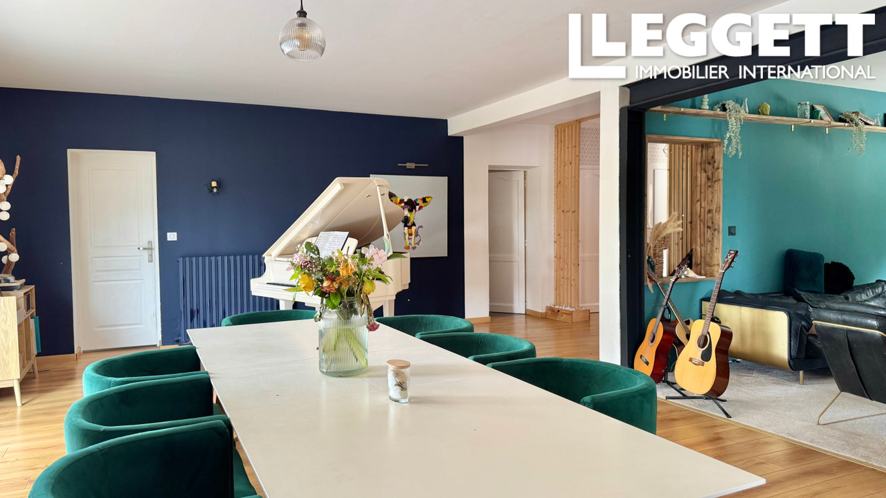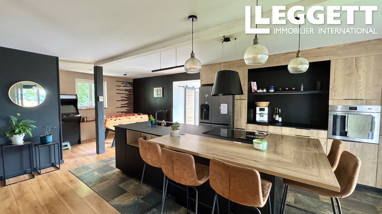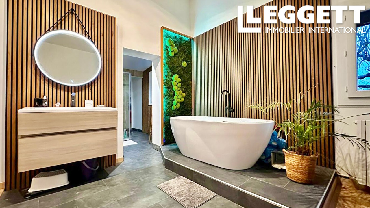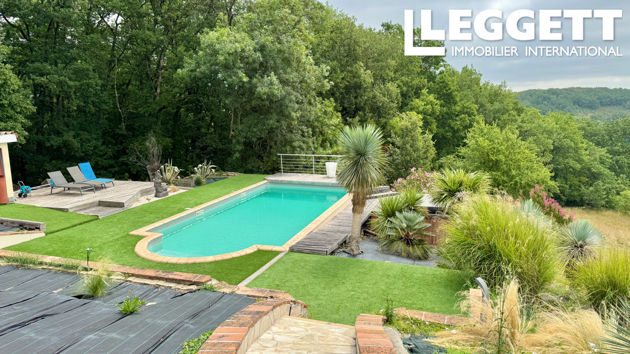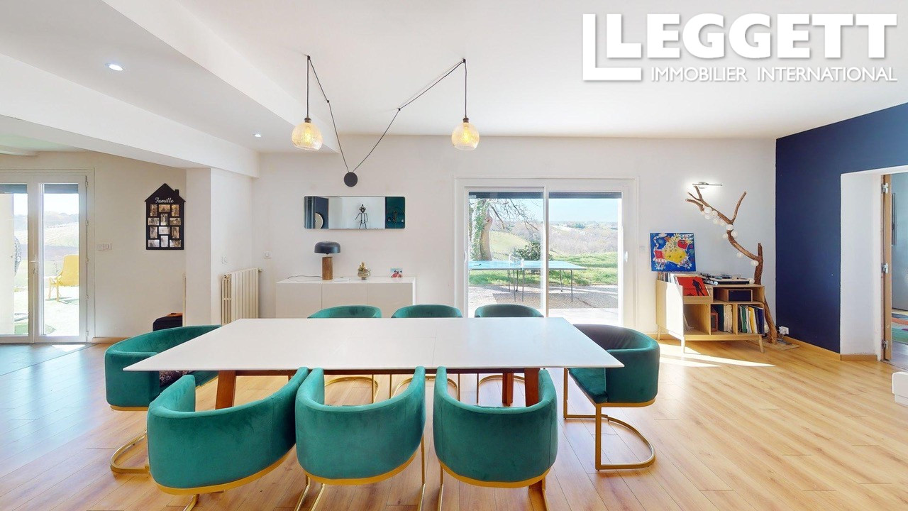 A38487SNM82 - Cette superbe maison de caractère près de Montesquieu (82) offre 5 chambres élégamment décorées, 3 salles de bain haut de gamme et une spacieuse cuisine design. Les grands espaces de vie ouverts permettent une circulation intérieure/extérieure idéale pour profiter des vues magnifiques toute l'année. Située sur 9 hectares paisibles avec bois privé, sentiers, jardins paysagers et source naturelle, elle est parfaite pour les chevaux ou une retraite au calme. Hammam, grande salle de jeux et studio polyvalent (danse, yoga, arts martiaux) complètent ce bien rare. Piscine idéalement placée avec vue panoramique. Chauffage central, poêle à bois, double vitrage, et potentiel pour créer 1 ou 2 chambres supplémentaires. Dépendances : grand garage, ateliers, abri pour tracteur. Un bien d'exception, au calme absolu, fini avec des prestations de grande qualité.