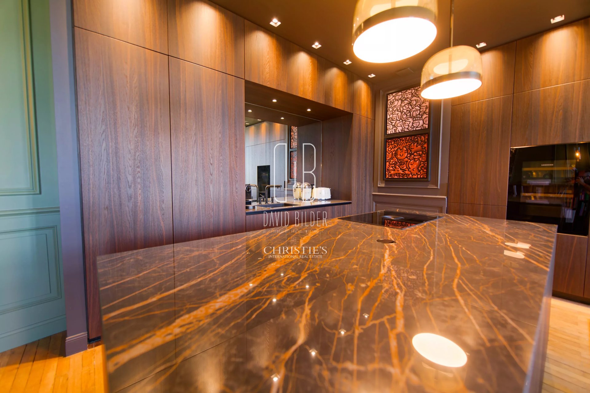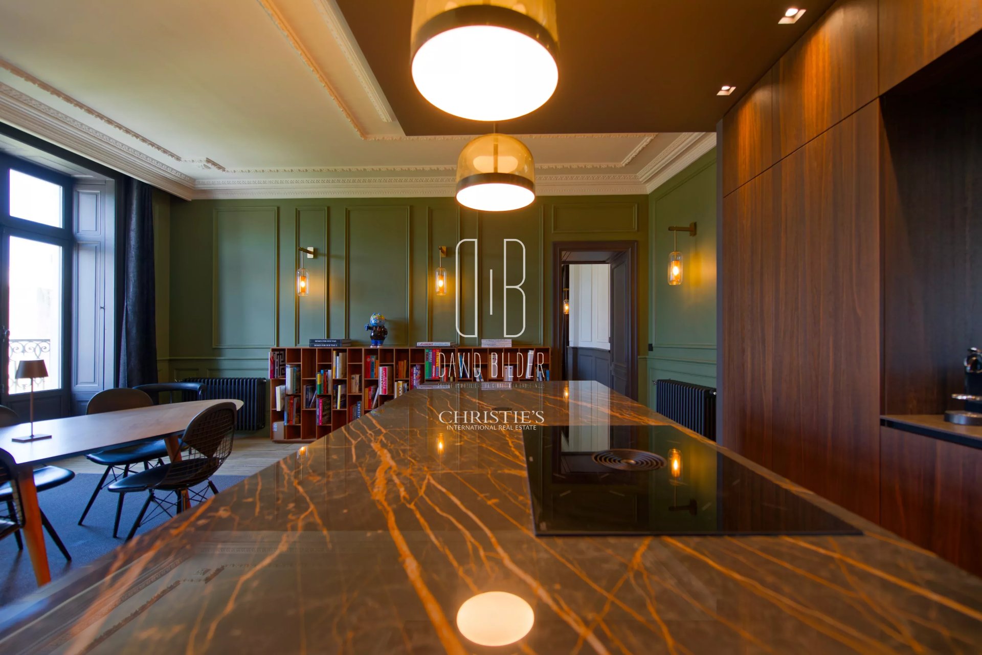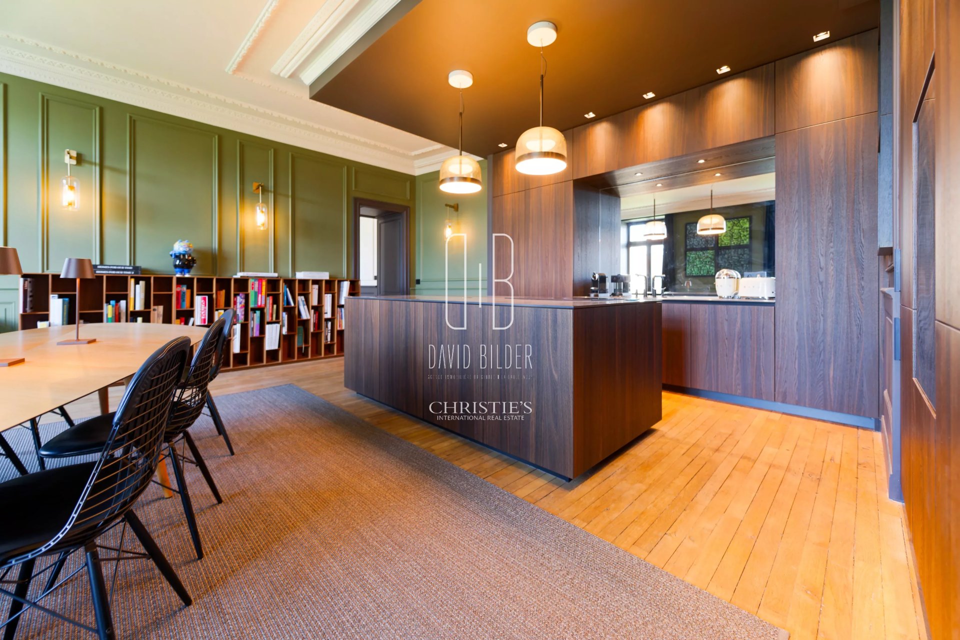 Les espaces de vie témoignent d'un design sophistiqué, présentant un mélange harmonieux d'éléments architecturaux classiques et d'esthétique moderne. Le vaste salon, orné d'élégantes moulures et d'une remarquable cheminée, est le lieu idéal pour se détendre et se divertir. Des œuvres d'art uniques et des meubles soigneusement sélectionnés donnent du caractère et de la profondeur à l'espace.
