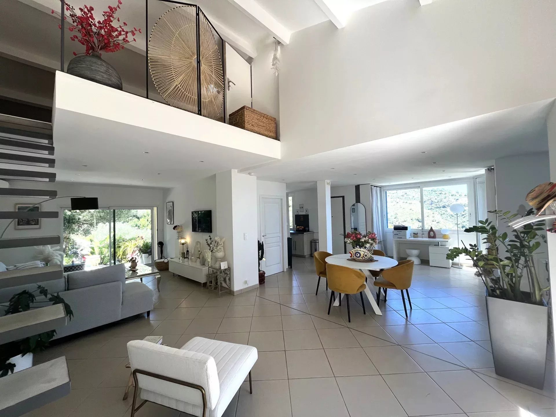 Au niveau supérieur se trouve un beau séjour double, une cuisine équipée semi-ouverte, une salle de bains, rangements. La hauteur sous plafond a permis de faire une vaste mezzanine utilisée en chambre et un grand espace de rangement séparé pour une surface de 40 m² venant s'ajouter au 112 m² habitables. Le niveau inférieur est constitué de 2 chambres, une salle de douches. Toutes les pièces ouvrent sur une terrasse.
