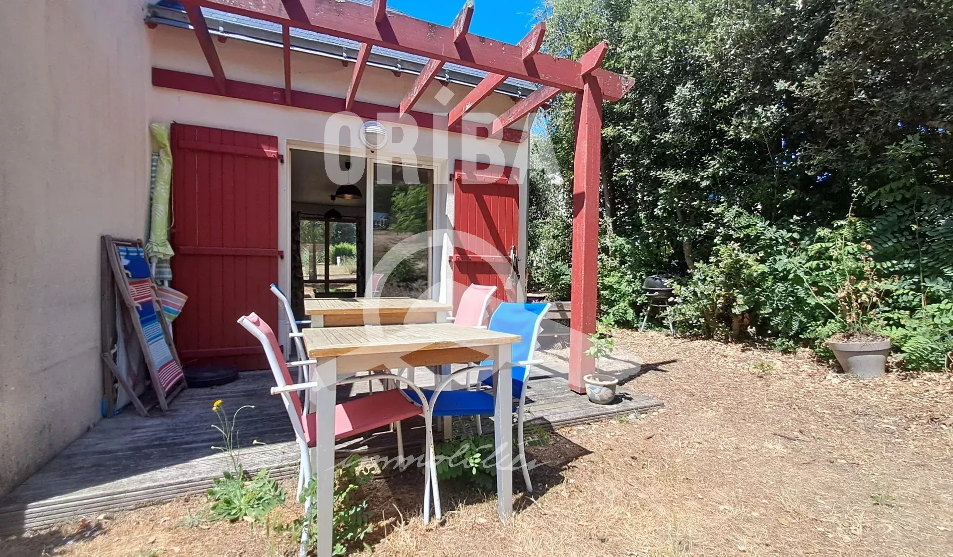 À 600m de la plage, dans un domaine privé, maison de 86m² habitable. sur un terrain d'environ 600m². Entrée, salon avec pôle à bois, accès à la terrasse et le jardin, cuisine ouverte sur le séjour, toilettes, dégagement, suite parentale avec salle d'eau, deux chambres, salle de bains. Garage. Environnement calme et sécurisé. À 1500 m des commerces. +33 6 67 47 53 79 - +33 2 40 61 30 40