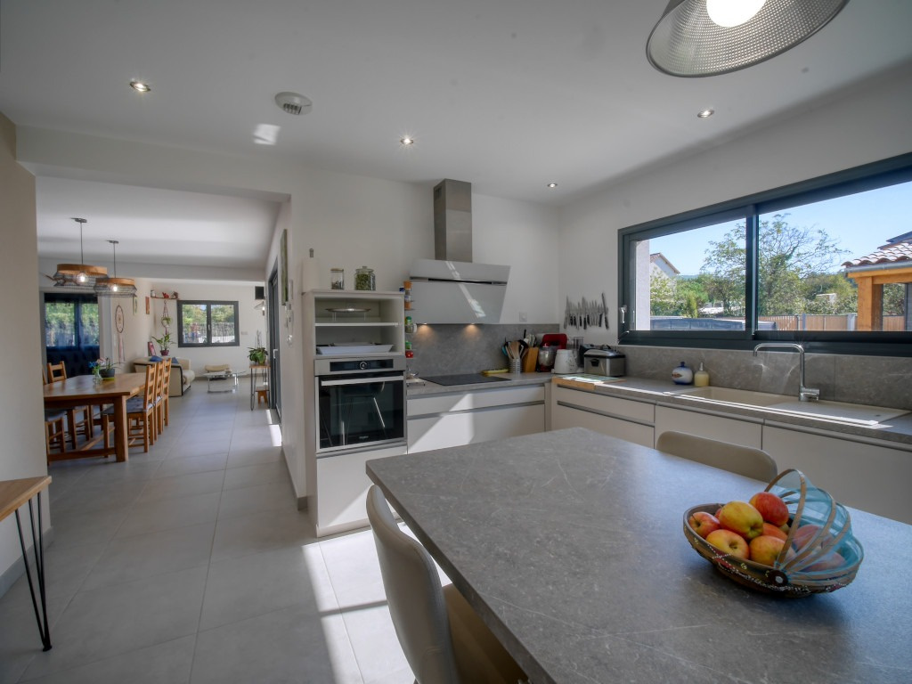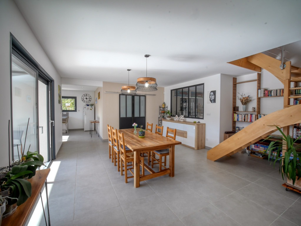 Crest, aux abords de ville, à 15 minutes à pied du centre, je vous propose cette très belle maison contemporaine de 2019 proposant de très belles prestations et offrant 163 m2 habitables. Elle est complétée par un bâtiment annexe composé d'un local professionnel de 24 m2 entièrement aménagé et pré-équipé pour un studio, un grand garage de 32 m2, un salon couvert extérieur de 16m2, ainsi qu'un atelier en construction maçonnée de 20 m2.