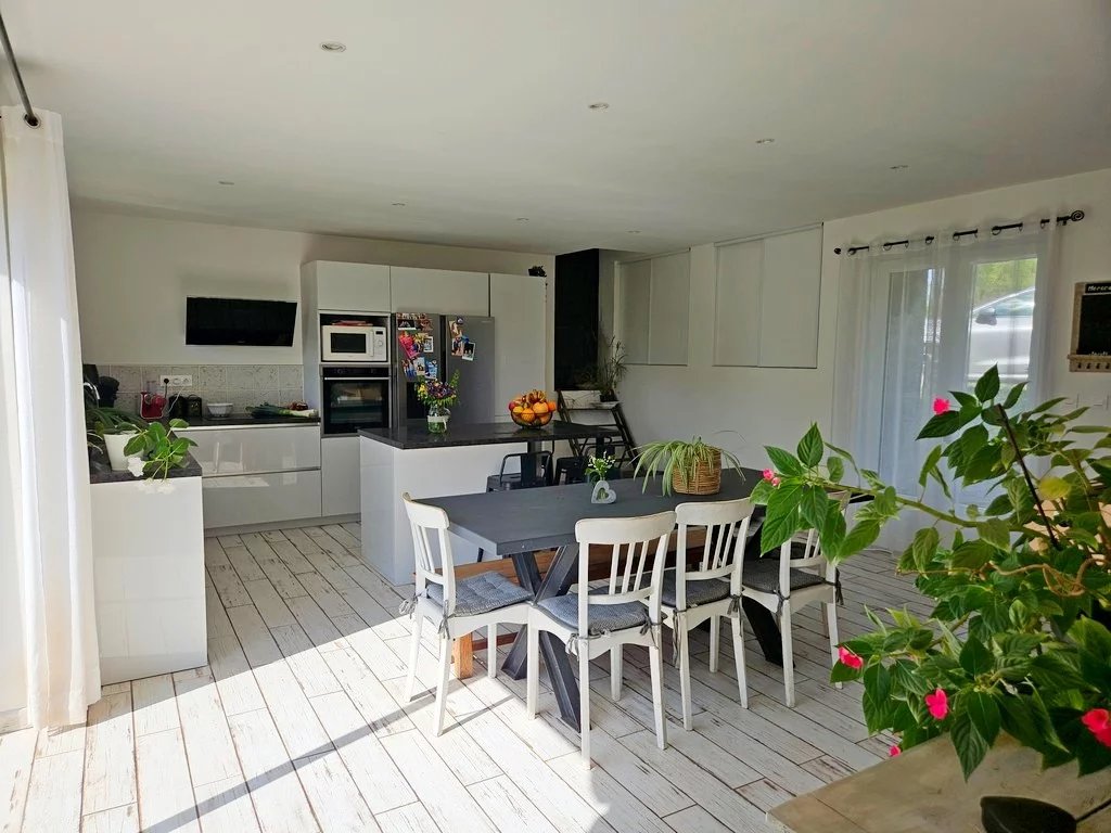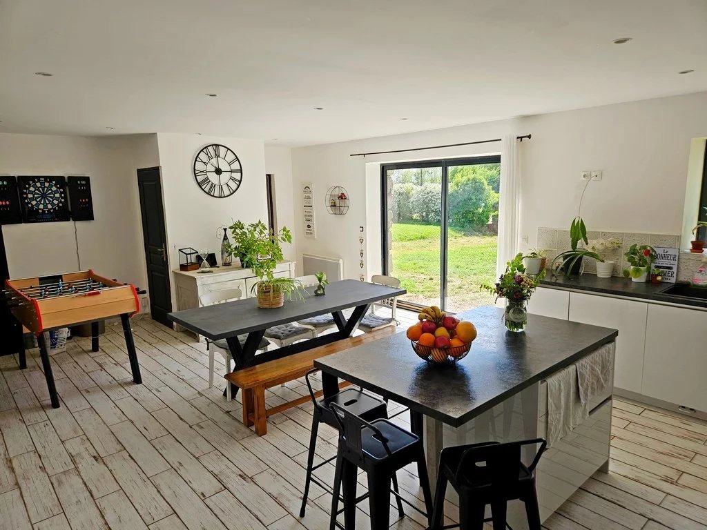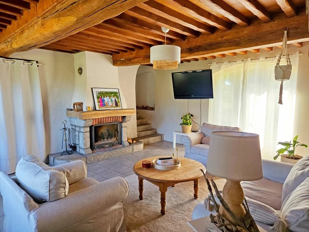 Toiture récente. L’ensemble avec double vitrage, chauffage bois/ insert avec restitution de chaleur et radiateurs électriques.