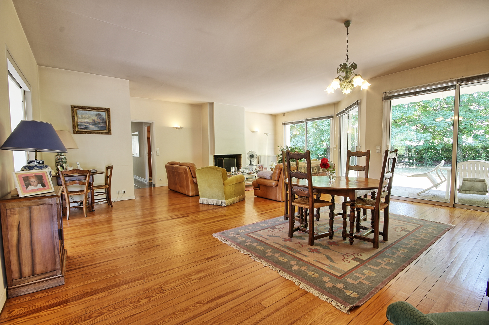 RARE !! Idéalement située dans le quartier « Brannes-Parc de Cotor » de Gradignan, maison d'architecte de 160m2 avec 4 chambres, garage et grand jardin avec dépendance sur parcelle de 906m2. De plain-pied, elle est composée d'un grand séjour lumineux de 55m2 avec 3 grandes baies vitrées sur jardin, d'une cuisine aménagée avec espace repas, de 4 chambres spacieuses (17, 13, 12 et 12m2) avec placards, de 2 salles d'eau dont une avec baignoire et wc, d'une buanderie et d'un 2e WC indépendant. Un garage de 25m2 avec porte électrique complète ce bien. Maison construite en 1992 avec belles prestations : Huisseries double vitrées, volets roulants électriques, cheminée dans le séjour, belle hauteur sous plafond de 2.75m