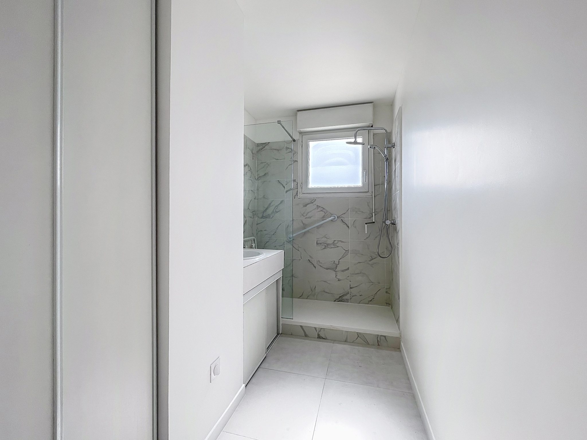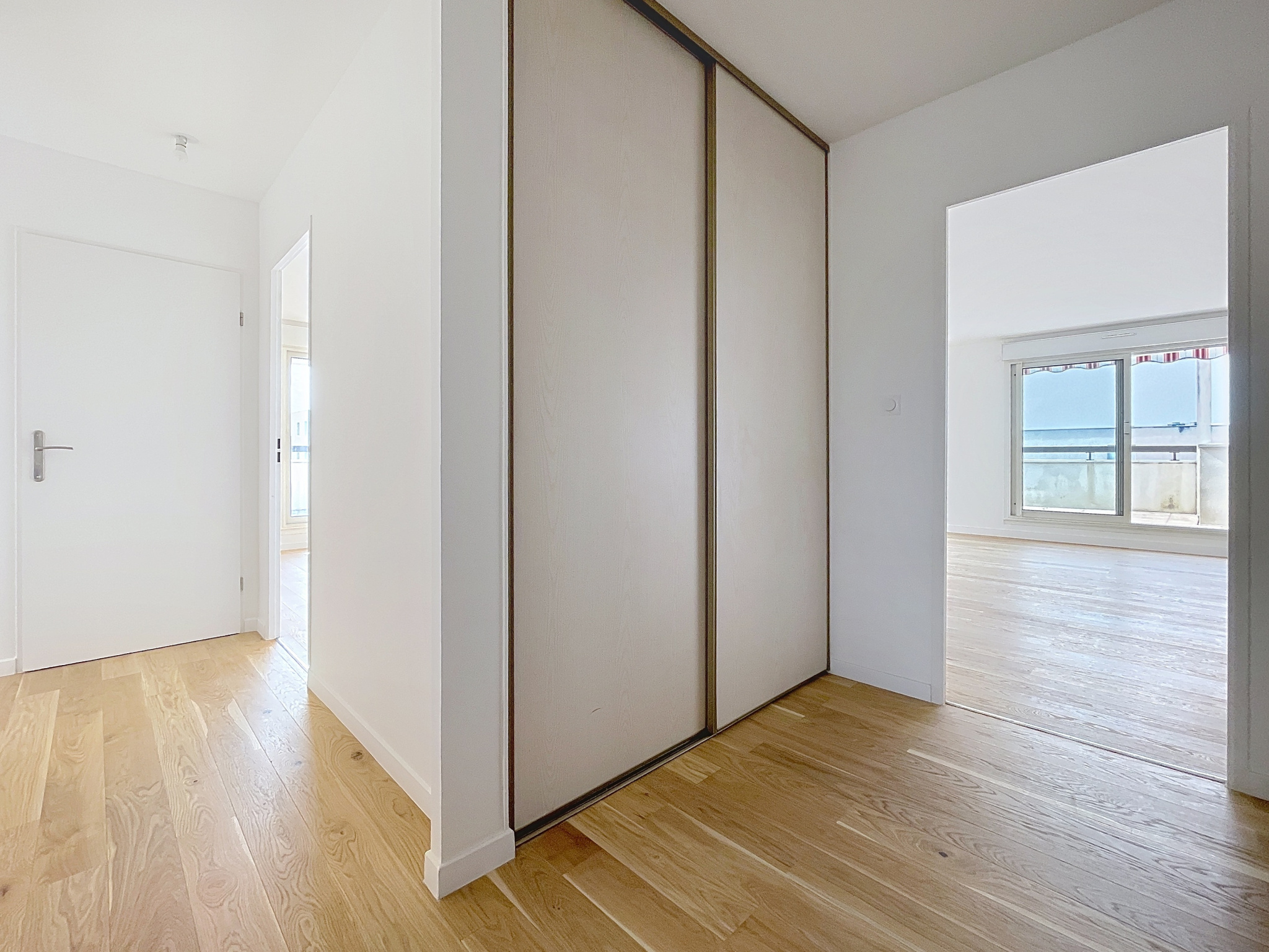 DANS RESIDENCE FERMEE - Bel appartement entièrement rénové TRAVERSANT et LUMINEUX de Type 5 d'une surface de 122 m2 situé au 3ème et dernier étage avec ascenseur, comprenant : un hall d'entrée placard, un salon séjour donnant sur une terrasse exposée SUD, une cuisine séparée et équipée, un dégagement avec placard, 3 chambres dont deux avec placard et donnant toutes sur un balcon, une salle d'eau avec un wc, une deuxième salle d'eau, un wc indépendant, une buanderie. Parfait état intérieur,