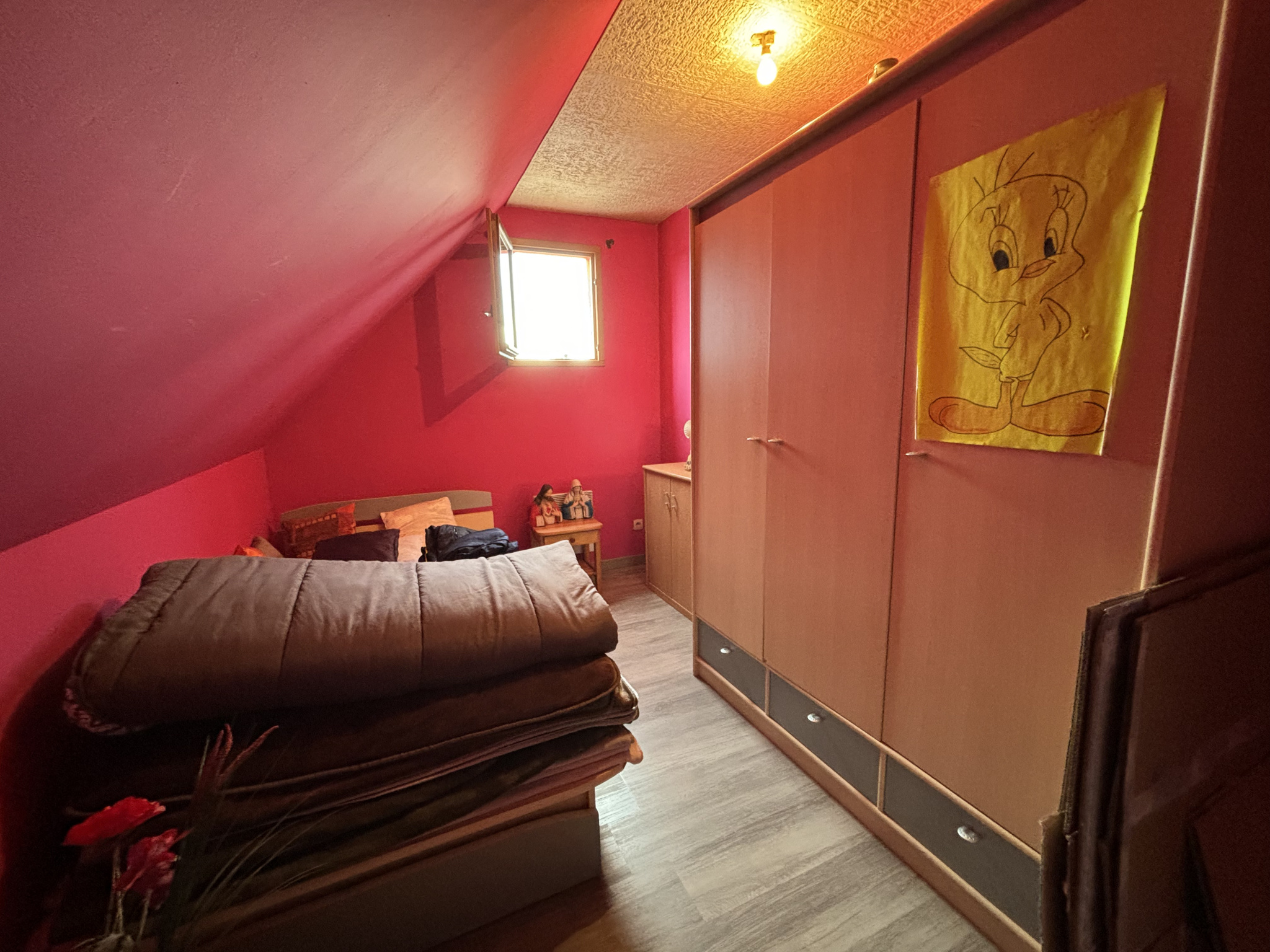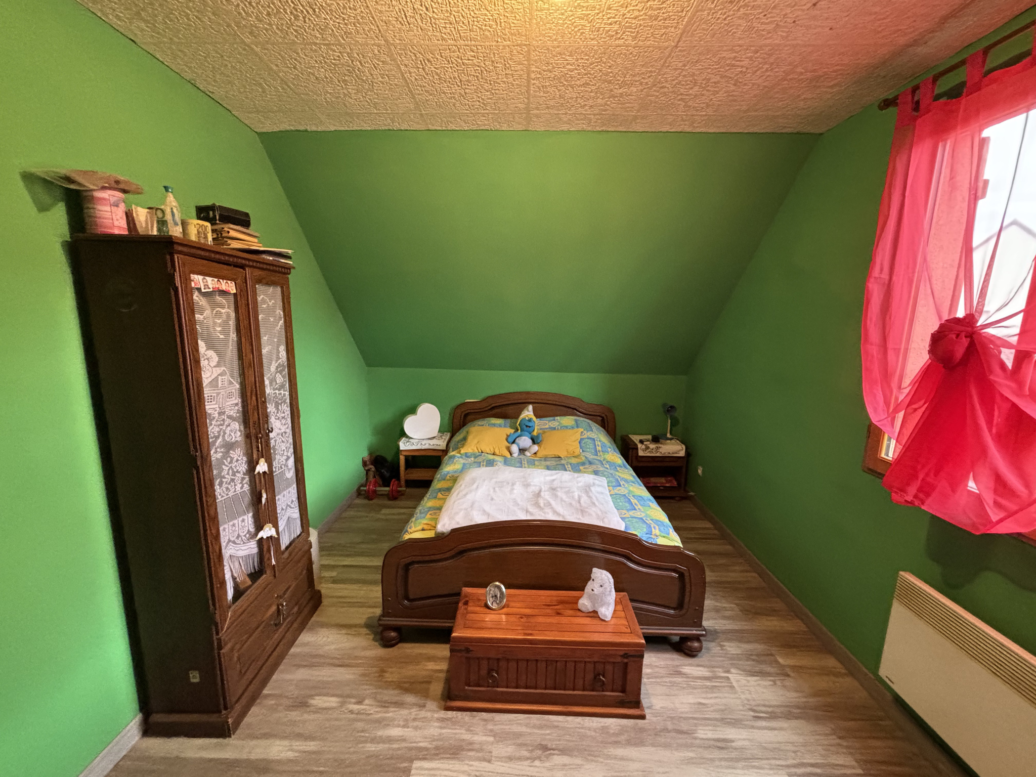 L'étage est constiué de deux chambres d'une superficie respective de 10,06m2 et 9,89m2, et d'un bureau d'environ 7,02m2